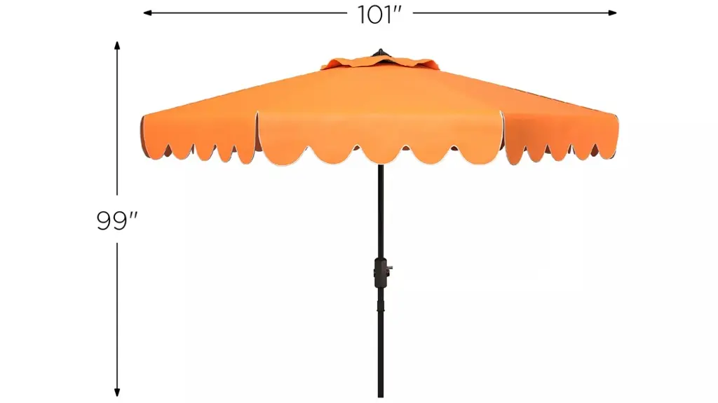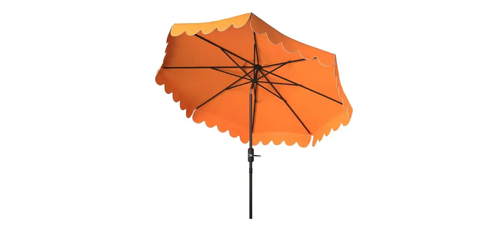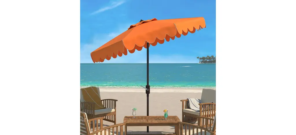 The signature coloration of Santorini's lush legendary resort inspired this Doreen Octagon Patio Umbrella. Its sophisticated hue features a single scallop trim to create an outdoor retreat for the modern tastemaker.