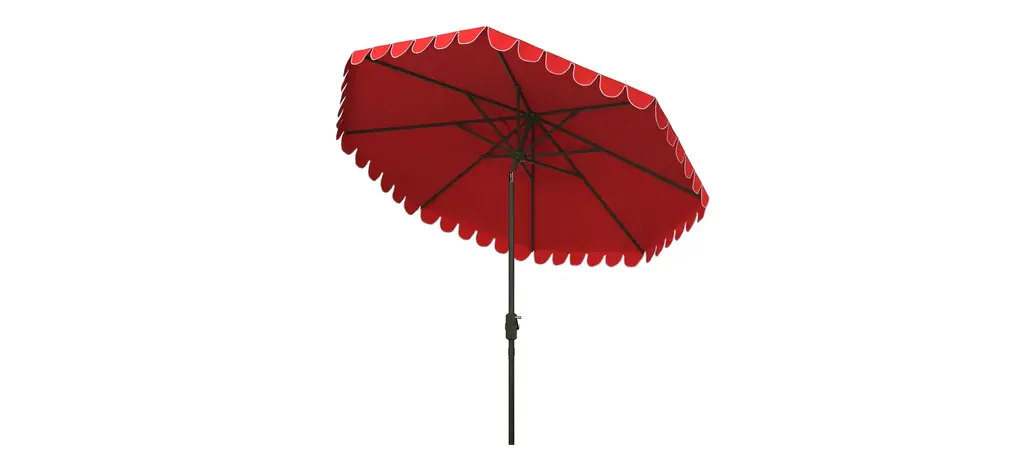 The signature coloration of Santorini's lush legendary resort inspired this Doreen Round Patio Umbrella. Its sophisticated hue features a scalloped trim to create an outdoor retreat for the modern tastemaker.