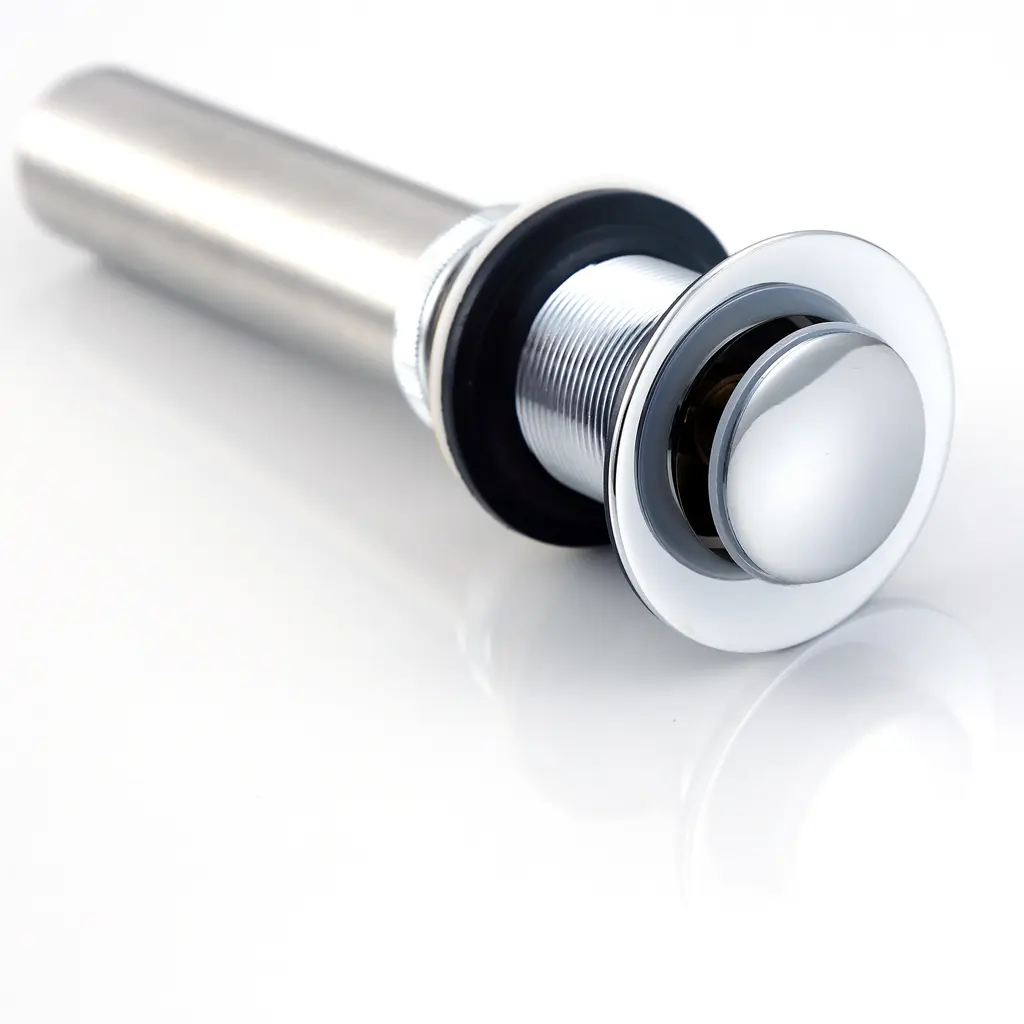 Eden Bath offers a full line of designer drains in a variety of finishes including Brushed Nickel, Chrome, Gold, Matte Black and Oil Rubbed Bronze. This drain will work with most vessel sinks that feature a drain hole 1 5/8-in in diameter or larger.The D001 series of pop-up vessel sink drains without overflow operate using a soft-touch method - simply press the top of the drain down to open it or close it. The spring loaded mechanism and rubber gasket ensure a tight seal. No separate popup drain lever is required to operate this drain.