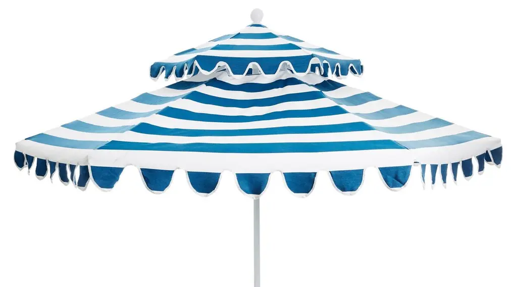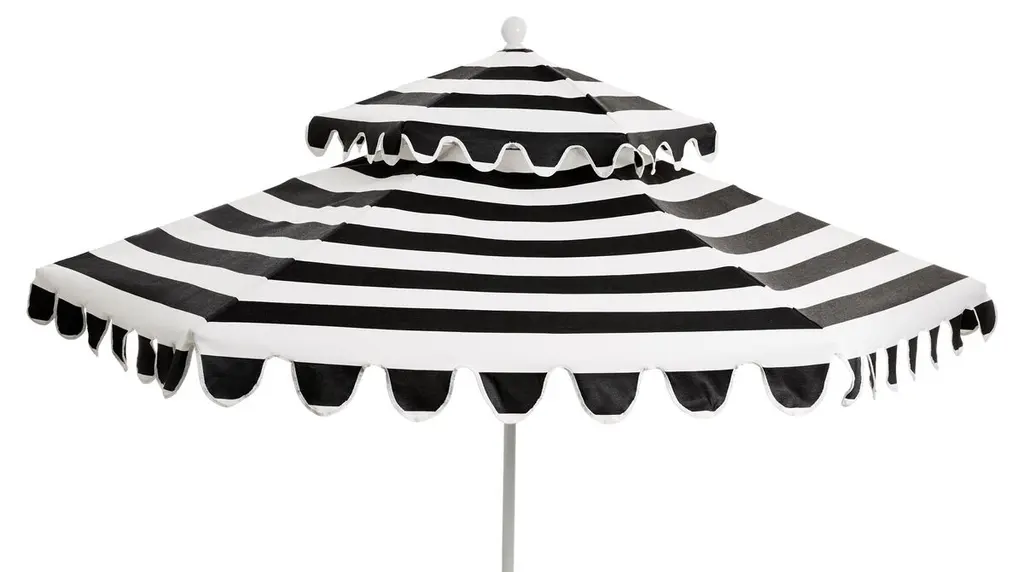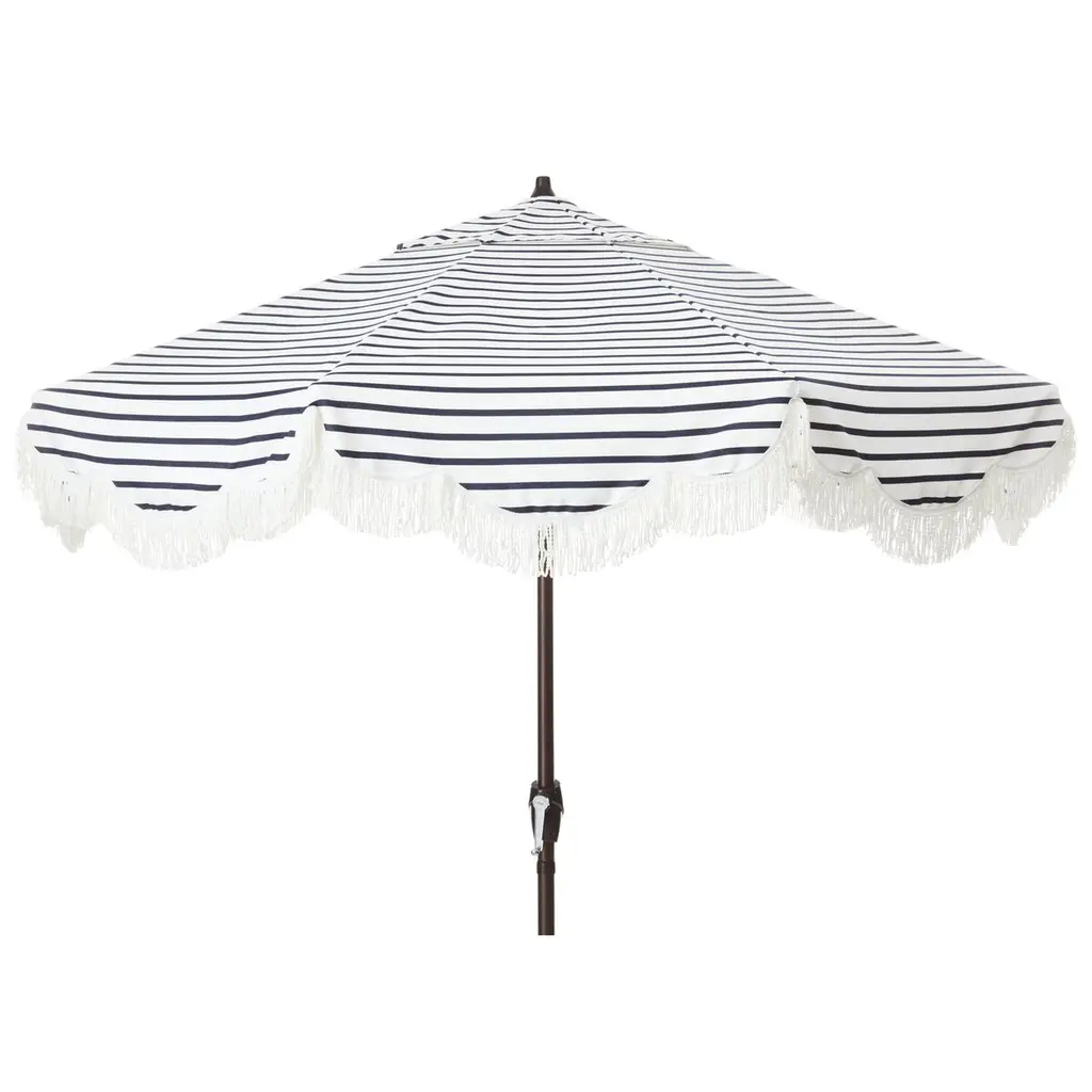 Elle Round Fringe Patio Umbrella, Sunbrella Stripe