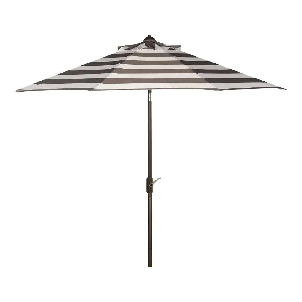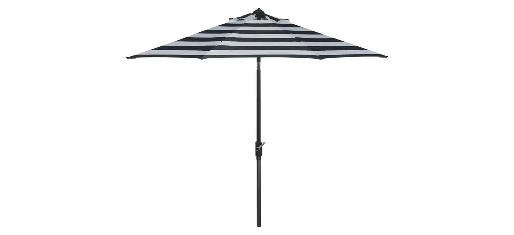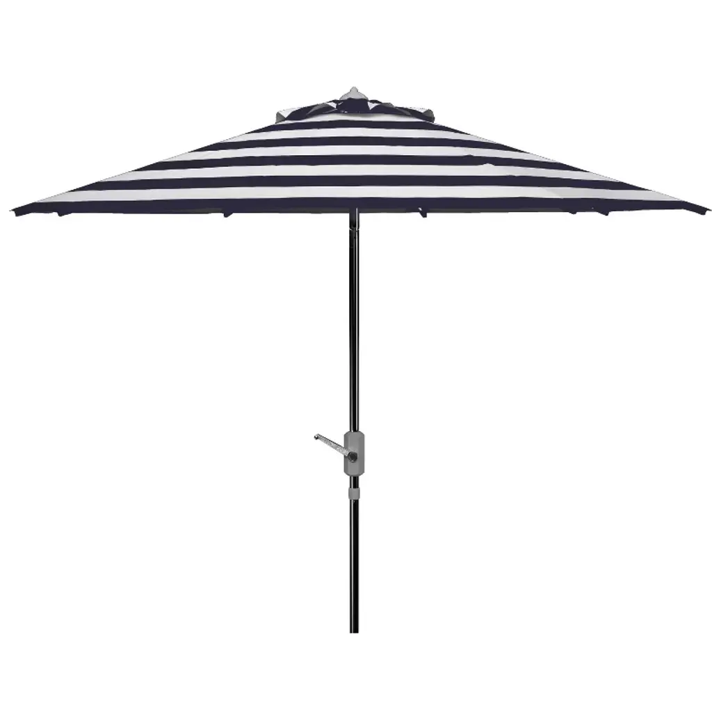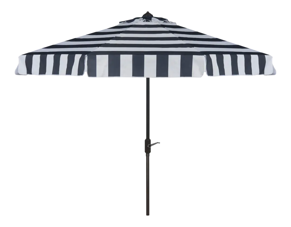 Inspired by the healing waters in a luxurious health spa in Germany’s village of Baden Baden, this stylish rectangleangular market umbrella is a favorite for those who love a touch of Euro flair. The always in fashion black and white stripes keep it classic, while its elegant trim gives it a subtle modern update. Open Dimensions: 118.11" x 78.74" x 106.3" Closed Dimensions: 6.1" x 106.3" Care Instructions: Store outdoor furniture indoors or cover well when not in use. Remove wooden furniture from standing water. Dust regularly with small brush or vacuum. Spills should be taken care of immediately before they harden or stain with a slightly dampened sponge. Do not use bleach solutions.