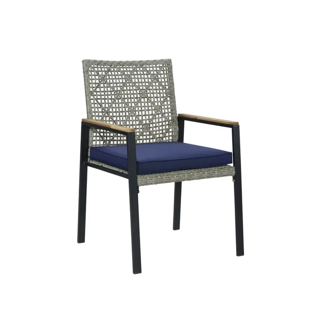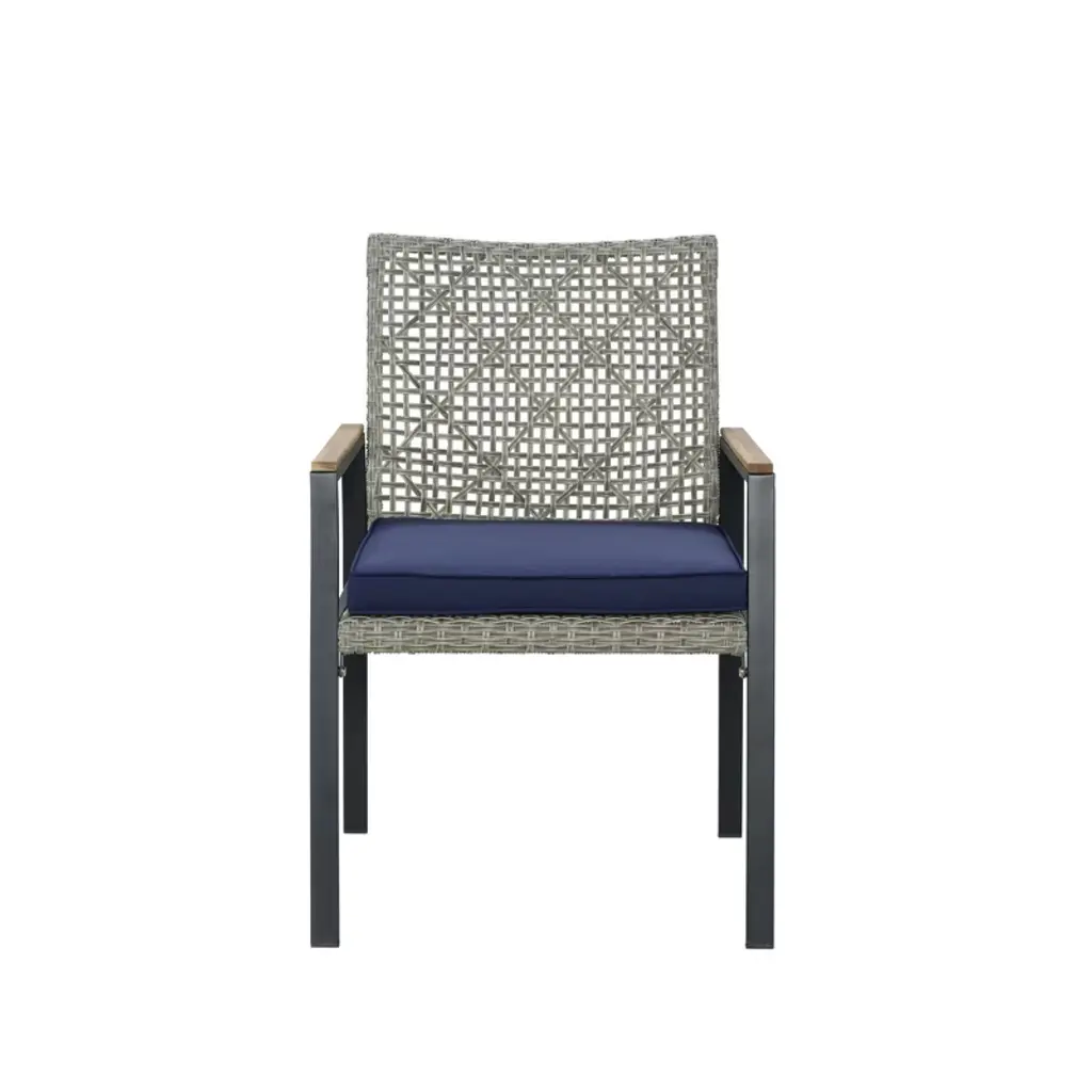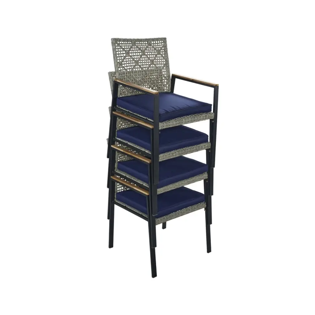 Elevate your outdoor dining experience with this all-weather 5-piece patio dining set. Featuring a durable acacia wood tabletop with a convenient umbrella hole, this light gray rattan conversation set is perfect for backyard, patio, or garden gatherings. Designed for lasting comfort and style, it includes four matching chairs with weather-resistant cushions to keep you comfortable during every meal or social event.
