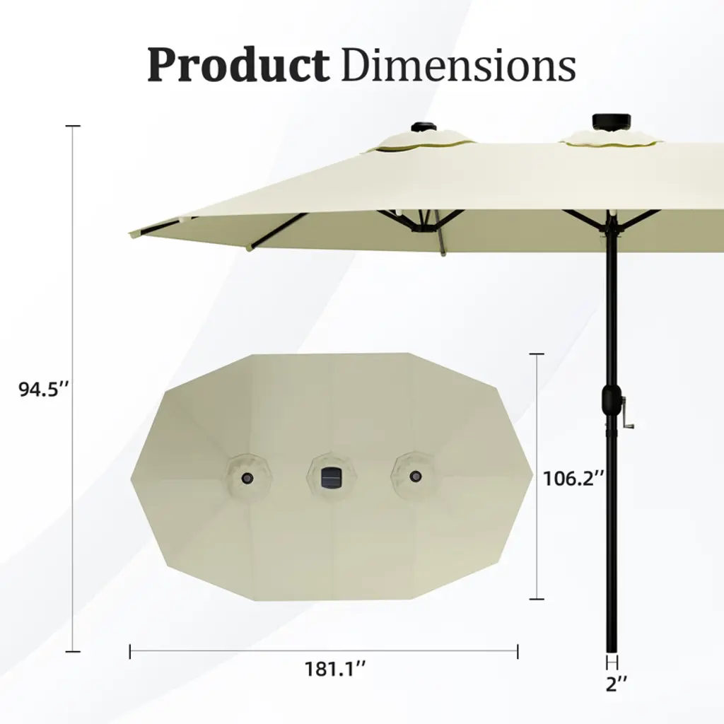 Fontoi Double Sided Outdoor Umbrella With Crank Handle, Rectangular Market Umbrella With 12 Ribs For Patio, Deck, Backyard, Beige, 106.2"*94.5"*181.1"