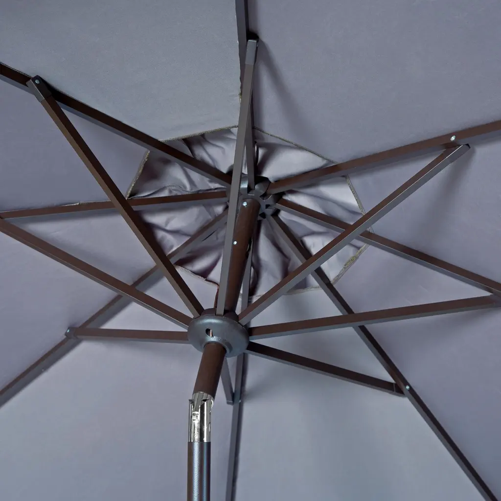 Fringe 9 Ft Crank Outdoor Push Button Tilt Umbrella In Grey & White