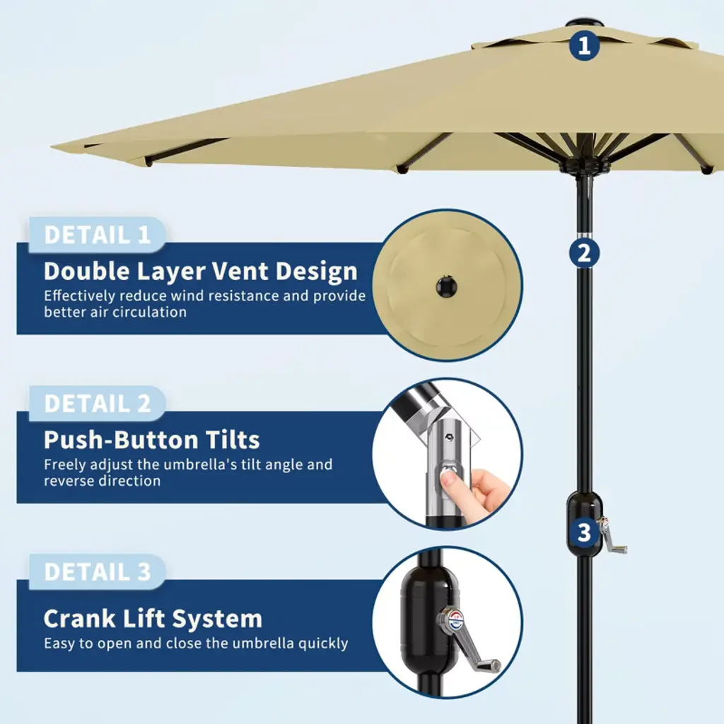Garvee 10ft Patio Umbrella, 8 Sturdy Ribs Outdoor Table Umbrella With Crank Lift & Push Button Tilt - Market Umbrella For Pool, Deck, Yard, Beige