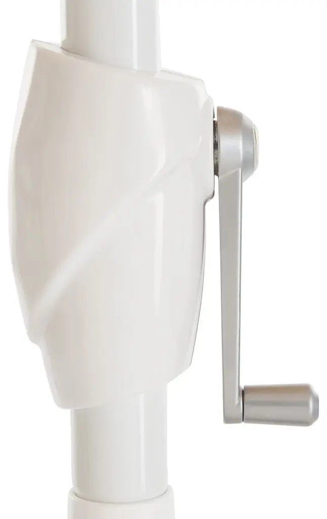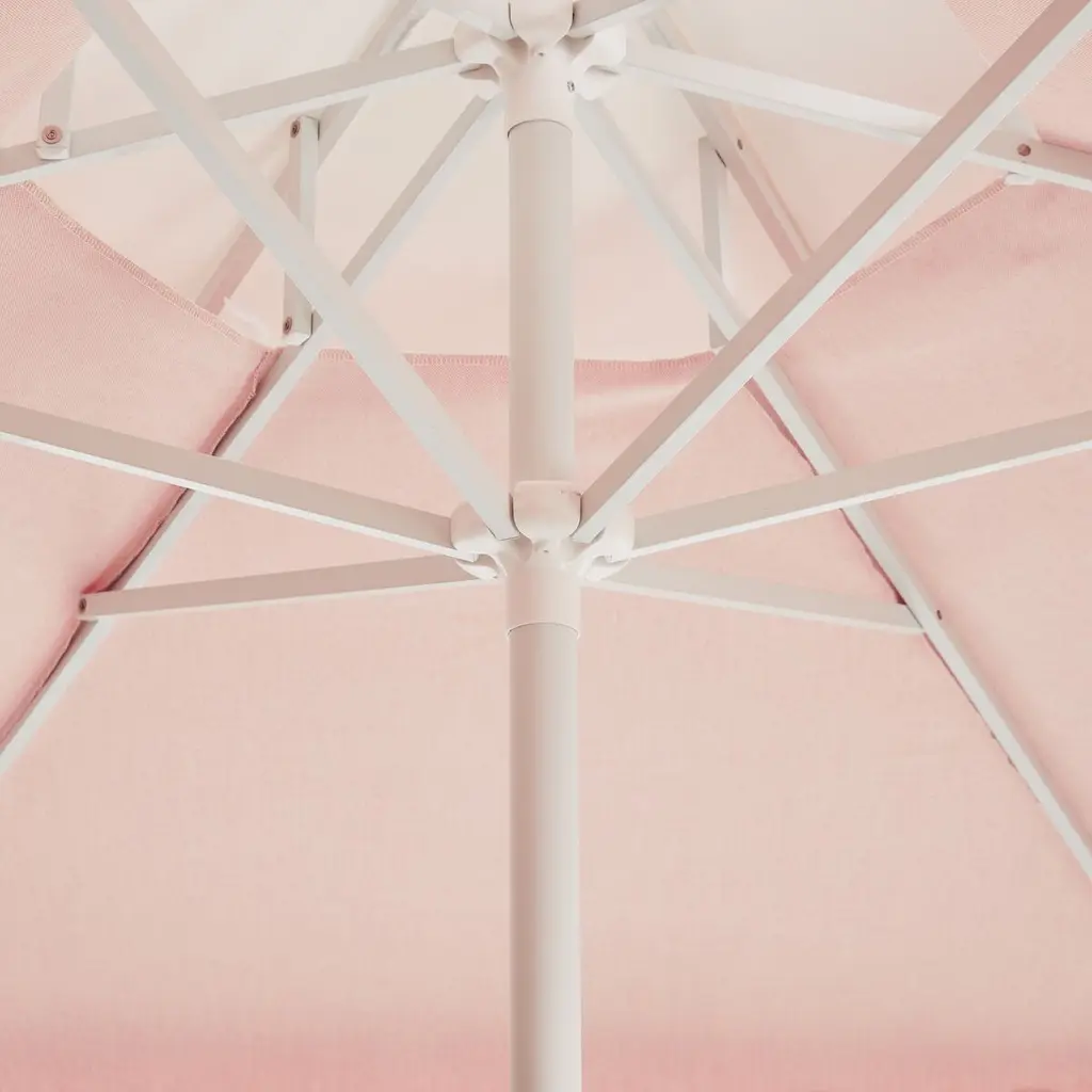 Designed by us and available only at One Kings Lane: Whether you're entertaining or just lounging outdoors, catch some shade in style with this two-tier patio umbrella. Its canopy is crafted from durable Sunbrella acrylic to protect against the elements, while its frame is crafted from a combination of sturdy aluminum and zinc plated steel with a crank mechanism. An umbrella base is not included but is required for use.
