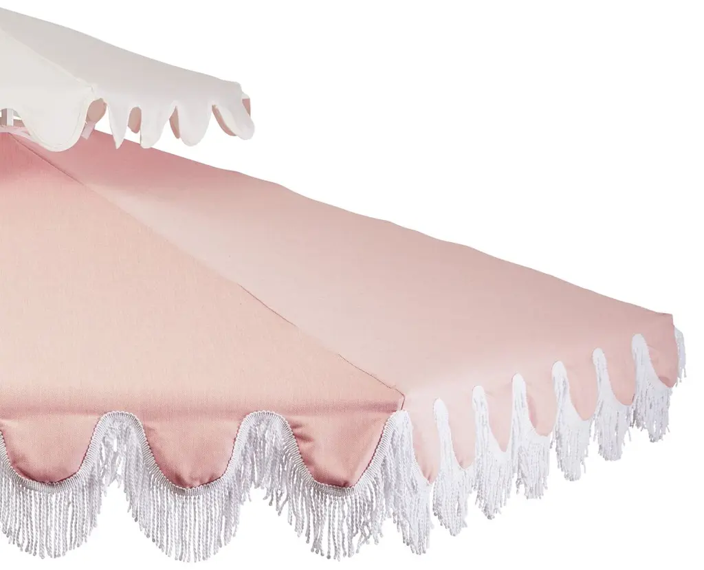 Ginny Two-tier Two-tone Fringe Patio Umbrella, Sunbrella