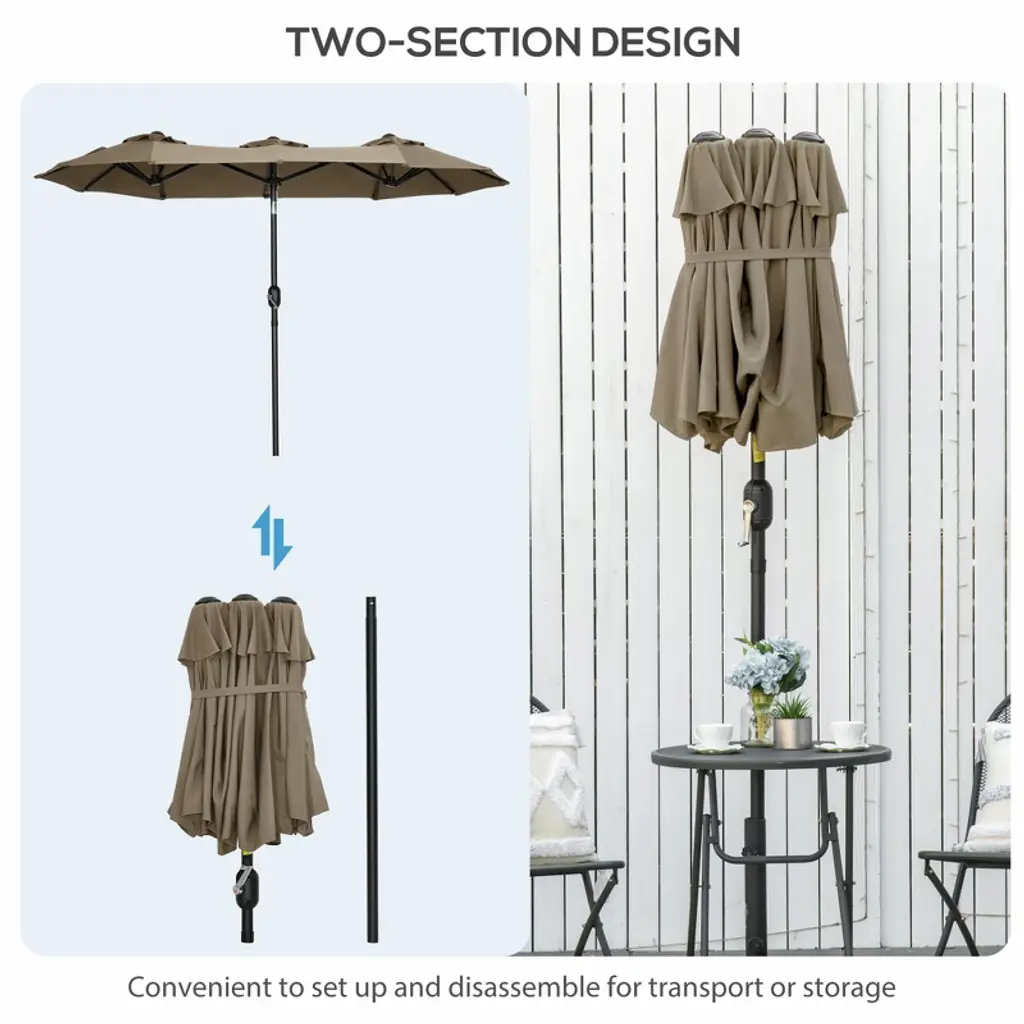 Gulches 9.5' Large Double-sided Patio Market Umbrella With Push Button Tilt, Crank, 3 Air Vents, 12 Ribs - Gray, For Garden, Deck, Pool