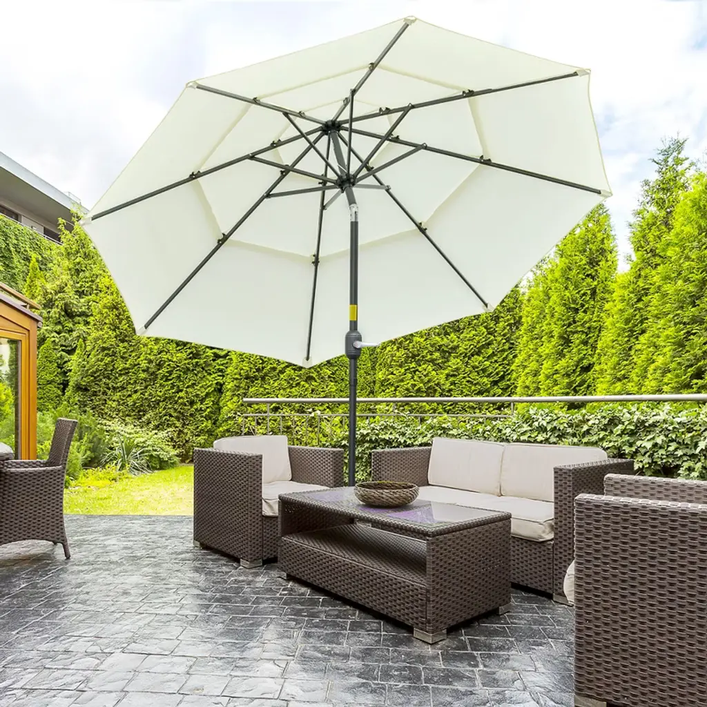 Gulches Beige 108-inch 3-tier Patio Umbrella With Crank And Tilt