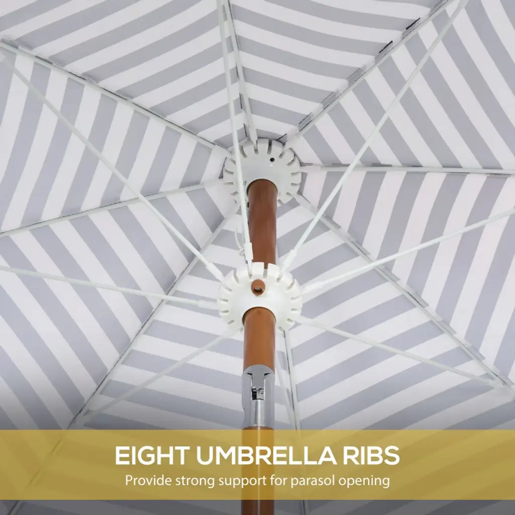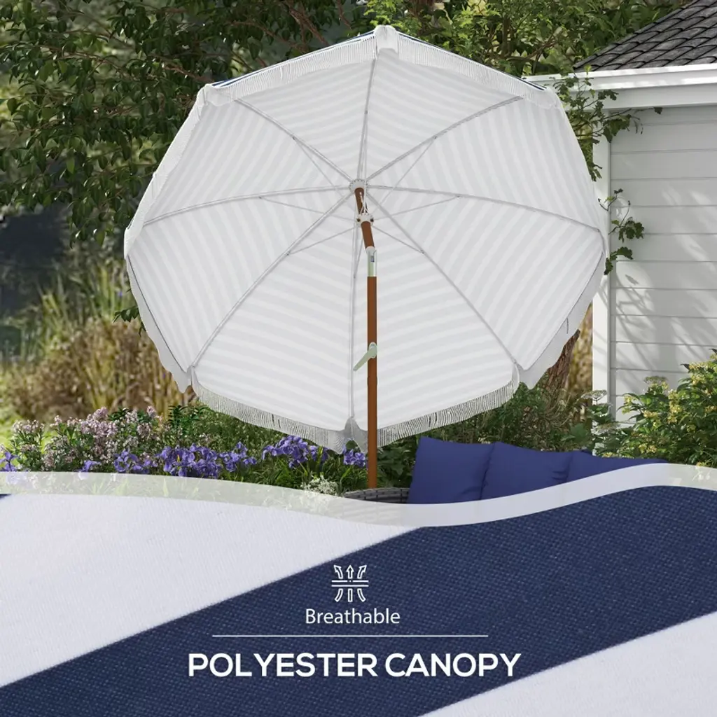 Elevate your outdoor experience with the Blue Stripe 84-Inch Patio Umbrella, designed to combine style and practicality. Featuring charming fringed ruffles and a flounce, this umbrella provides a delightful aesthetic while offering ample shade to keep you and your guests cool. The convenient tilt function allows you to adjust the angle for optimal sun protection. Perfect for balconies, gardens, and patios, this umbrella is a stylish addition to any outdoor setting.