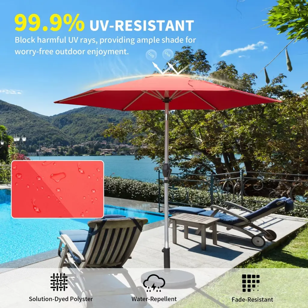 Transform your outdoor space with the Brick Red 90-Inch Patio Umbrella, a stylish and functional addition to any garden, deck, or poolside area. This umbrella provides ample shade and a vibrant touch to your outdoor decor. The user-friendly crank lift system allows for quick and easy opening and closing, while the push-button tilt feature lets you adjust the shade to your preferred angle. With its striking brick red color, this umbrella not only offers protection but also enhances the aesthetic appeal of your outdoor setting.