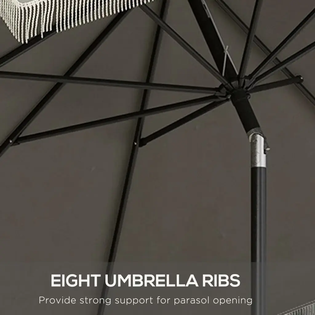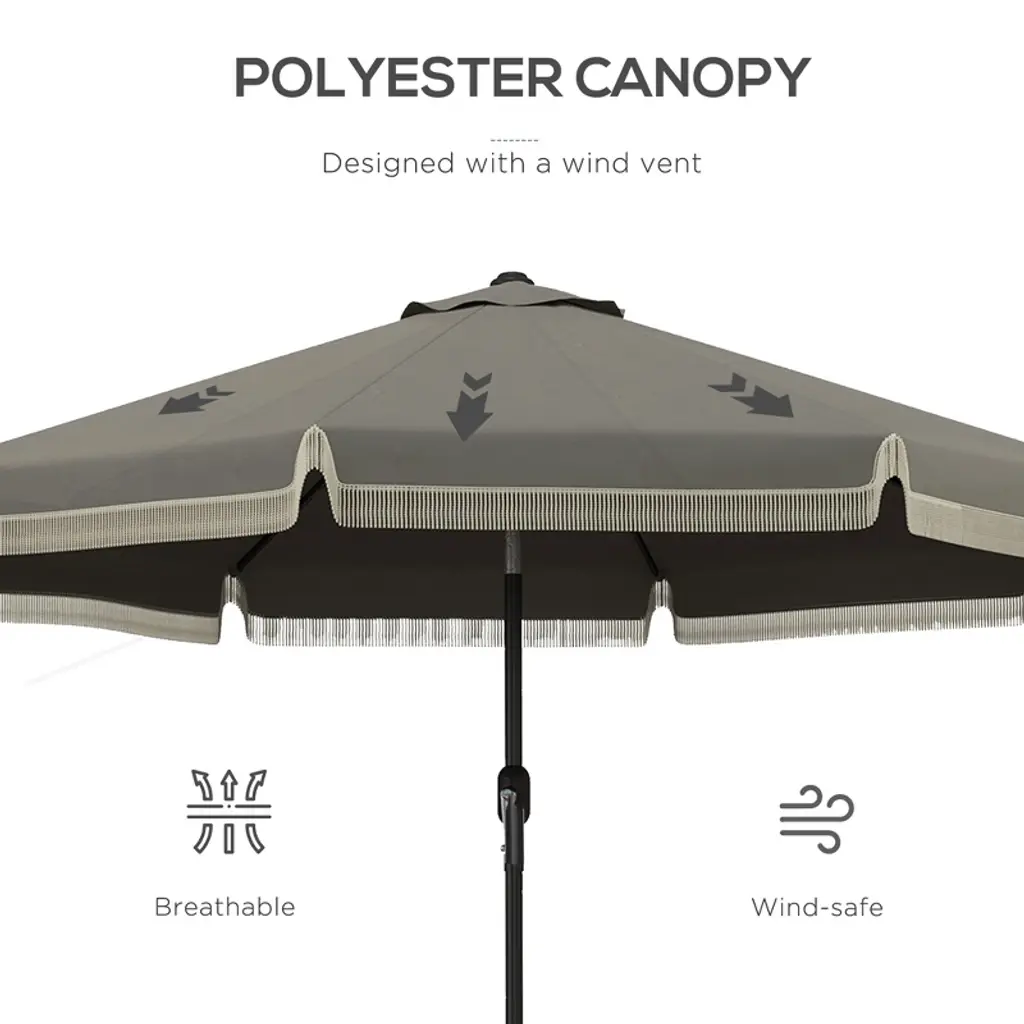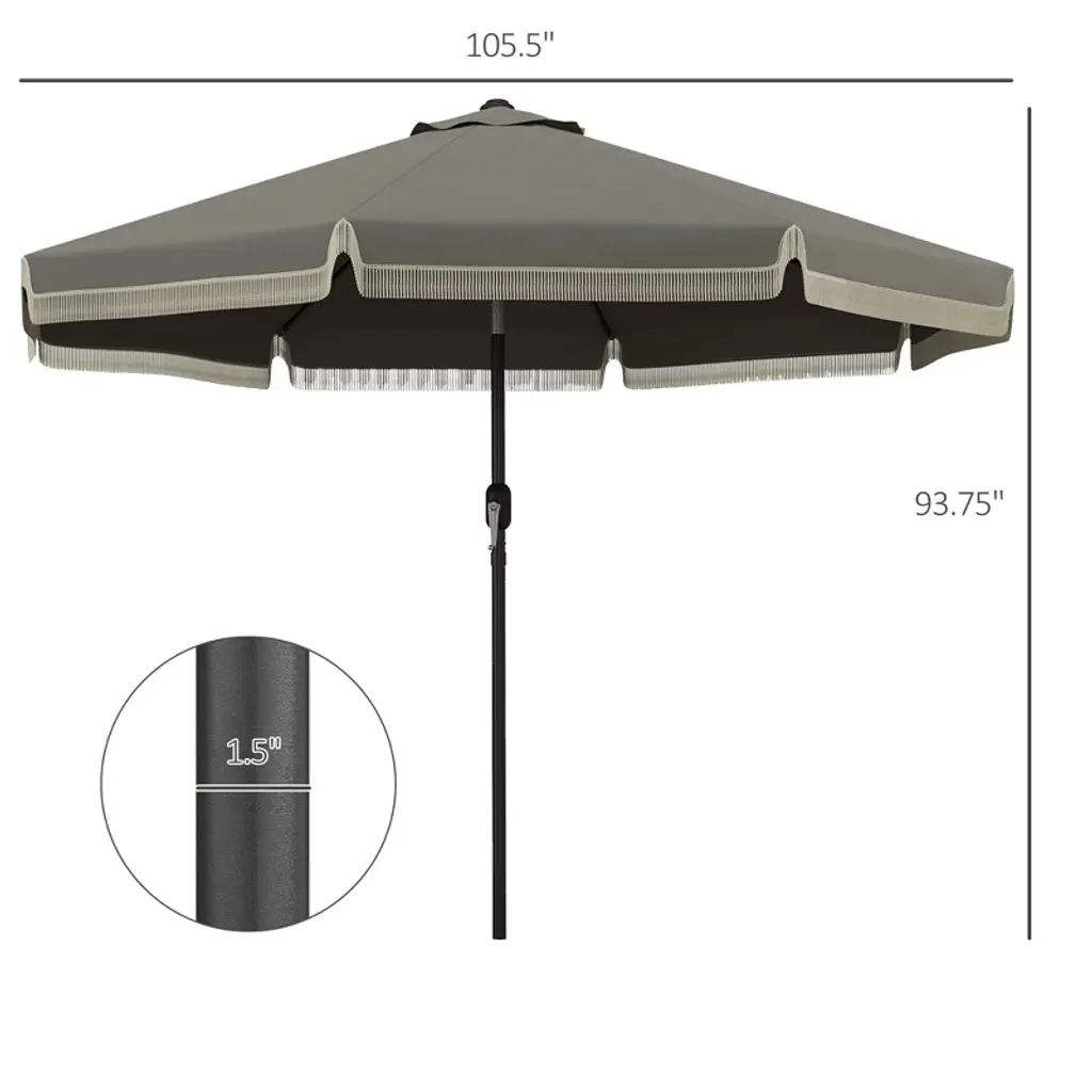 Transform your outdoor space with the Dark Gray 106-Inch Patio Umbrella, a perfect blend of elegance and functionality. Featuring charming fringed ruffles and a spacious canopy, this umbrella provides ample shade to keep you and your guests cool and comfortable. The push-button tilt and crank system allow for easy adjustment, ensuring optimal sun protection. Ideal for gardens, decks, and poolside areas, this umbrella adds a sophisticated touch to any outdoor setting.