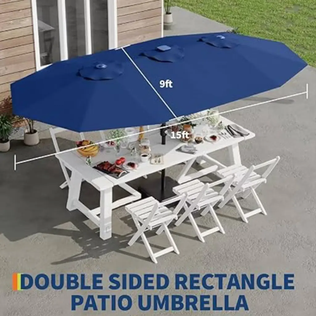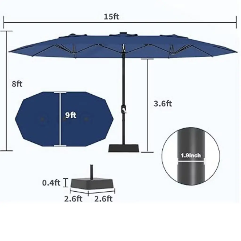 Gustowave Double-sided 15ft X 9Ft Outdoor Patio Umbrella For Pool, Deck, Navy Blue