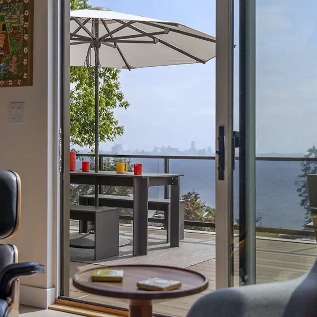 The Hall Outdoor Dining Table with Umbrella Hole from Loll Designs is crafted to withstand all four seasons, offering durability and resilience for year-round outdoor use. Made from ultra-durable high-density polyethylene, this furniture includes materials partially sourced from recycled single-use plastics, such as milk jugs and shampoo bottles. This eco-friendly approach ensures that the pieces are long-lasting and low-maintenance and contributes to environmental sustainability by repurposing plastic waste. Enjoy stylish, worry-free outdoor living with furniture designed for every season.