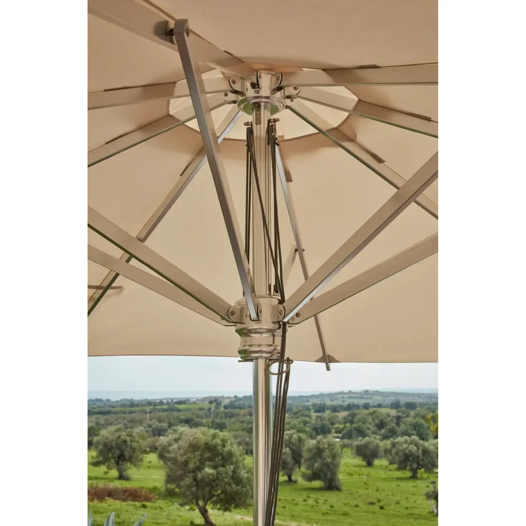The handcrafted LIPARI outdoor umbrella by Unopiù is the epitome of luxury and exclusivity. Made with a sturdy wood structure and 100% acrylic fabric, it is resistant to stains, salt, and U.V. fading. This completely removable umbrella allows for easy replacement of individual elements, making it a long-lasting investment perfect for any outdoor setting. Complete your upscale outdoor space with the LIPARI garden umbrella.