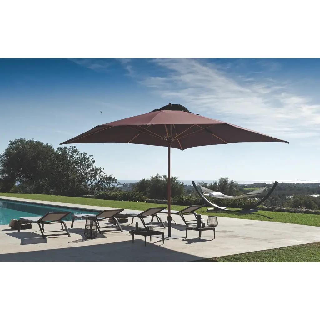 The handcrafted LIPARI outdoor umbrella by Unopiù is the epitome of luxury and exclusivity. Made with a sturdy wood structure and 100% acrylic fabric, it is resistant to stains, salt, and U.V. fading. This completely removable umbrella allows for easy replacement of individual elements, making it a long-lasting investment perfect for any outdoor setting. Complete your upscale outdoor space with the LIPARI garden umbrella.