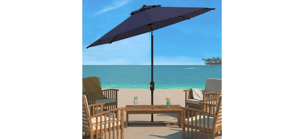 The classic Herla Patio Umbrella gets a chic makeover with fashion forward fabric and a valance for extra sun protection and European flair. Its nine foot polyester canopy and sturdy aluminum frame make it the ideal umbrella for veranda or pool deck. Includes easy crank and tilt mechanism.