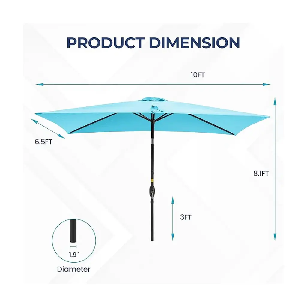 Heynemo 6.5 X 10 Ft Rectangular Patio Umbrella, Outdoor Table Market Umbrella With Crank, 6 Steel Ribs, Polyester Canopy, Tilt Umbrella, Light Blue