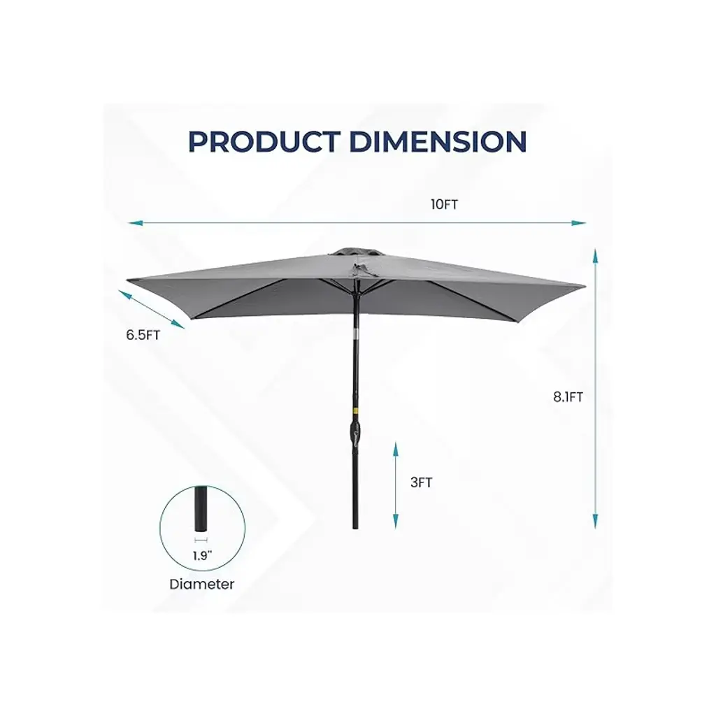Heynemo 6.5 X 10 Ft Rectangular Patio Umbrella, Outdoor Table Market Umbrella With Crank, 6 Steel Ribs, Polyester Canopy, Tilt Umbrella,gray