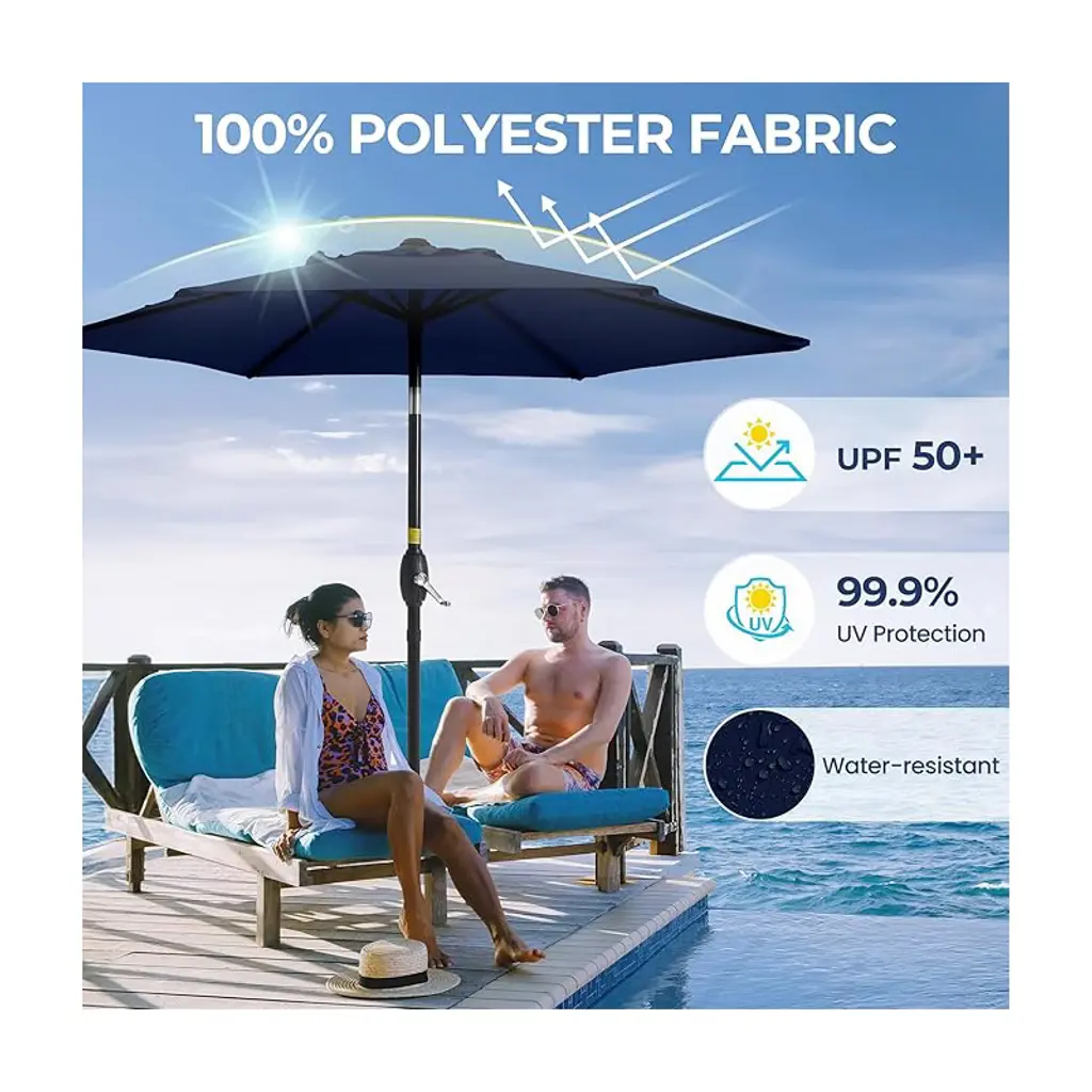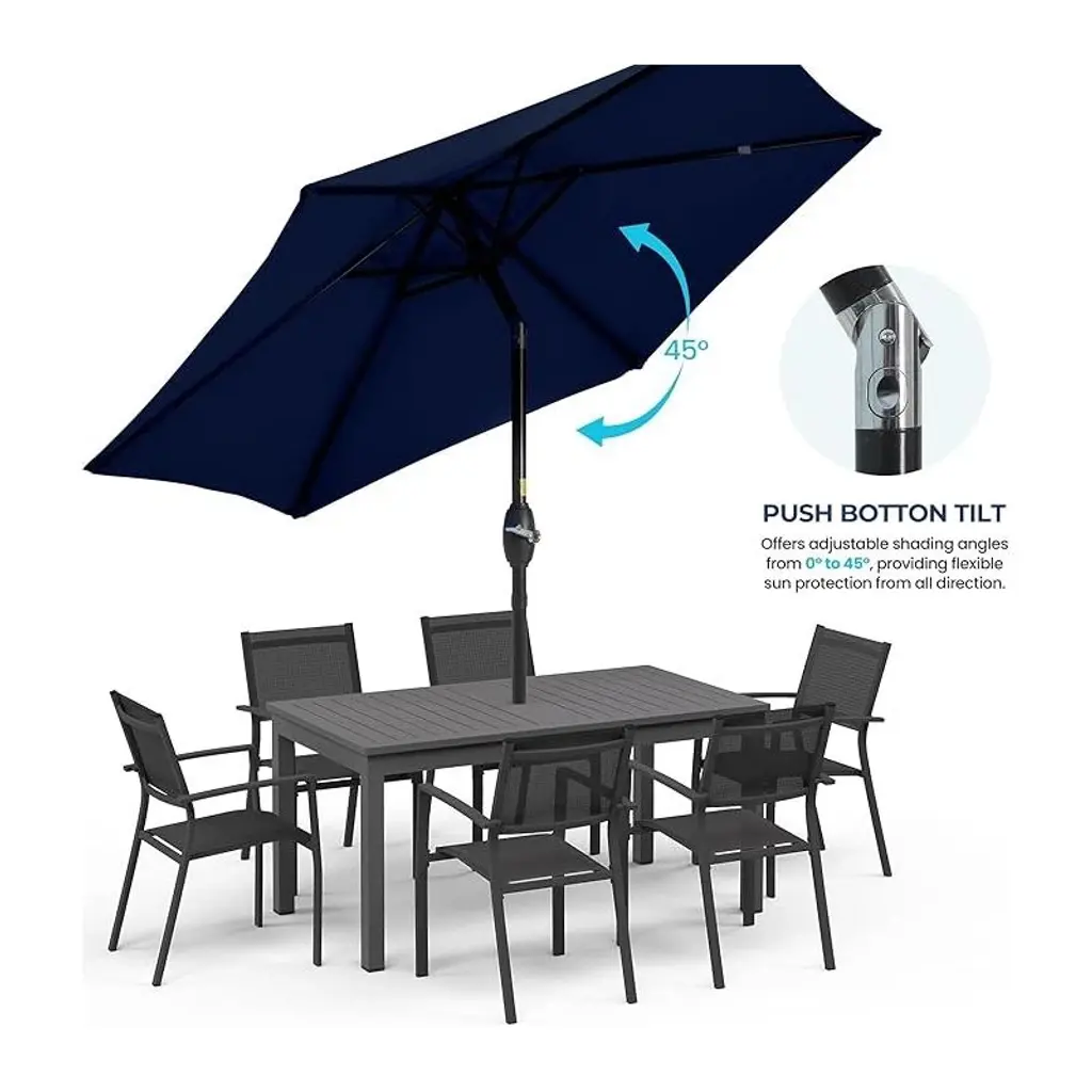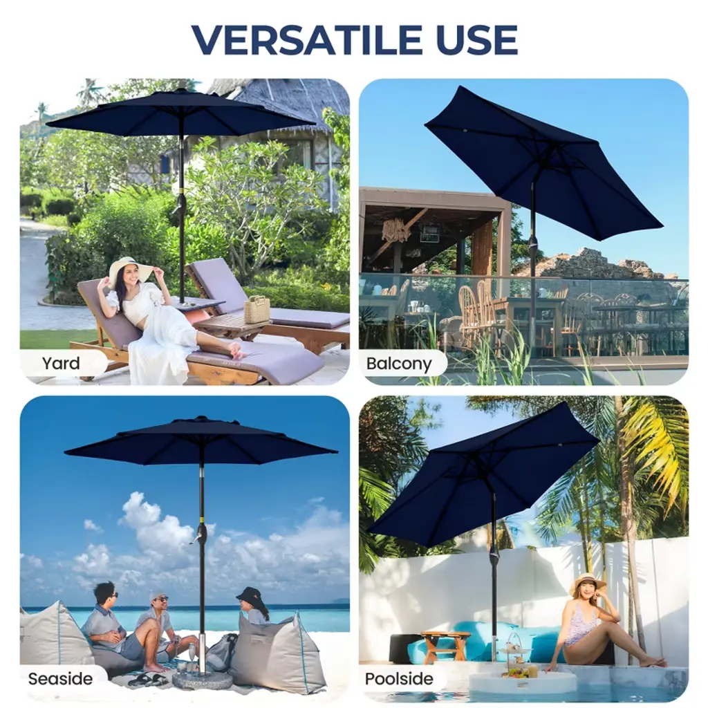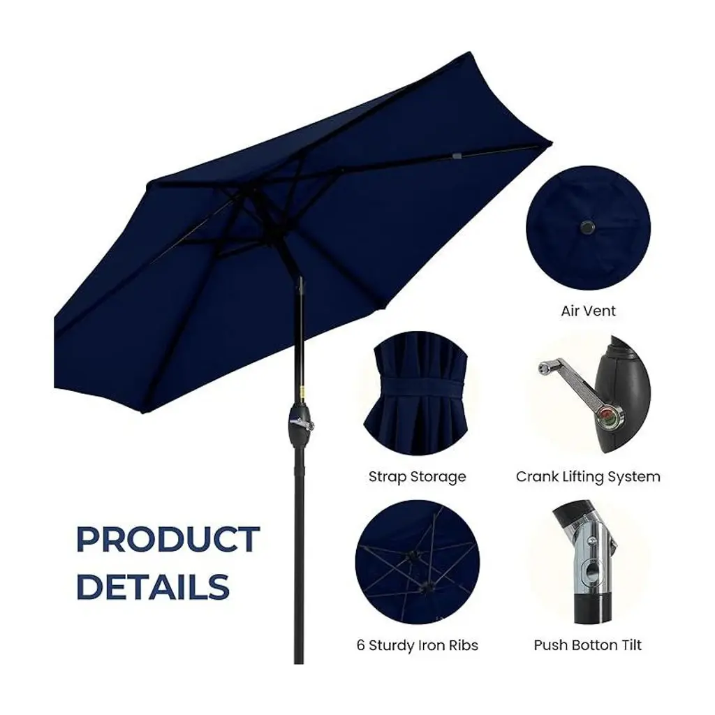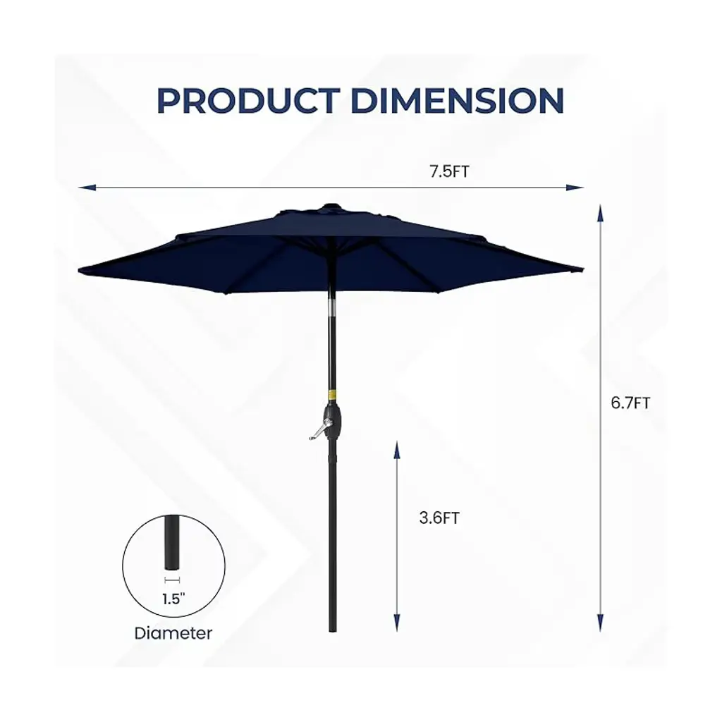 Heynemo 7.5 Ft Patio Umbrella Outdoor Market Umbrella Tilt Button And Crank 6 Ribs For Deck Lawn Pool & Backyard
