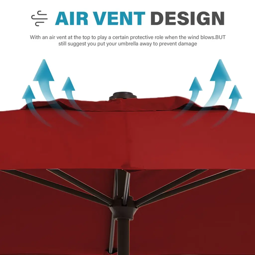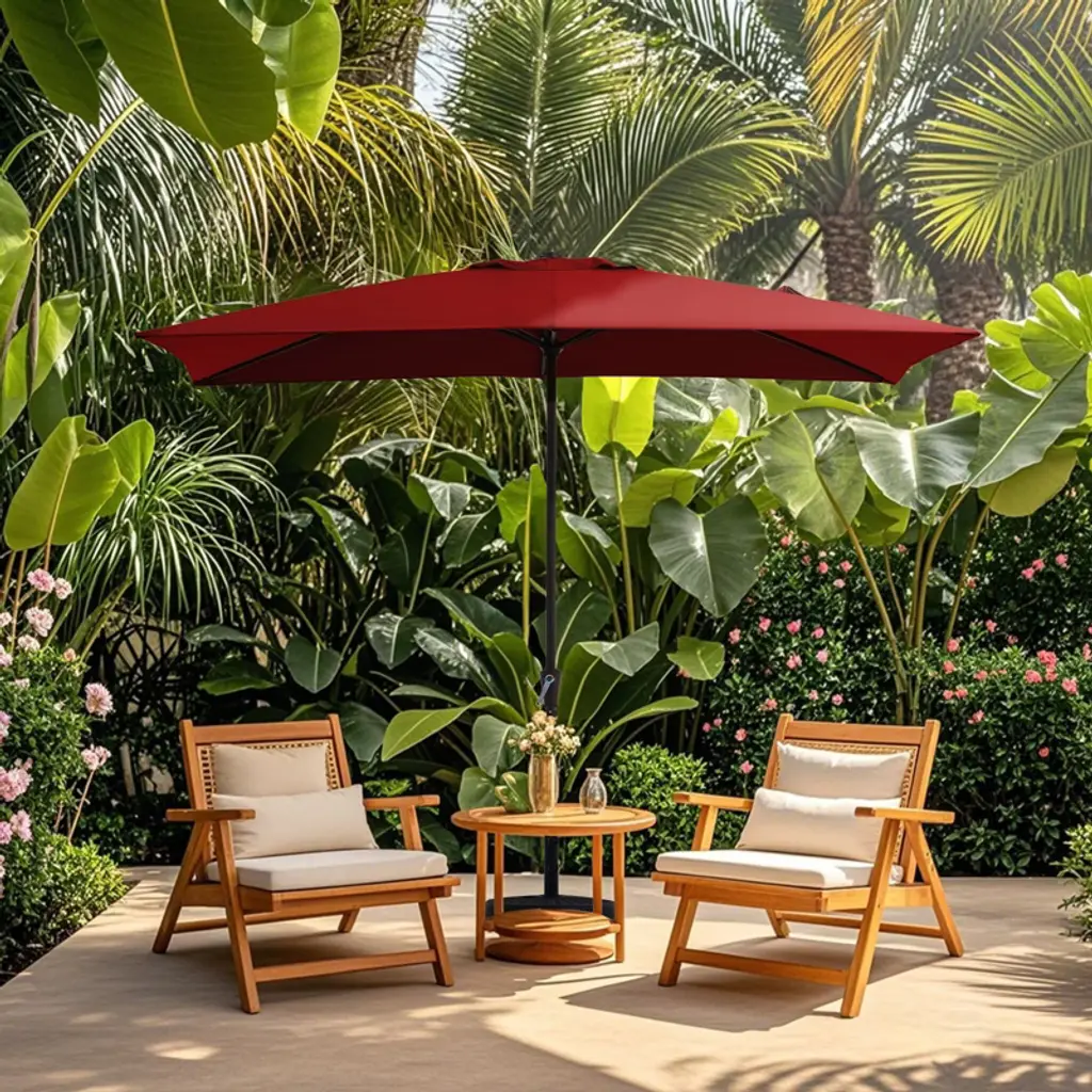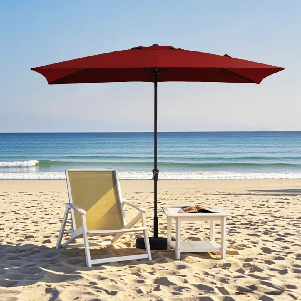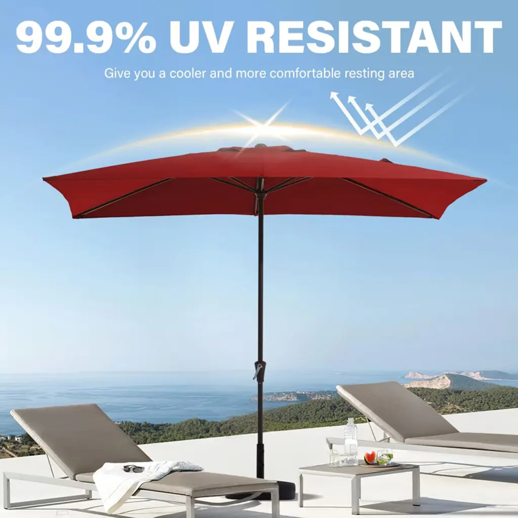 Enjoy the outdoors under the shade of this wonderful rectangular patio umbrella. Covering a wide area with its easy crank lift design, the umbrella blends perfectly with your patio furniture as you enjoy a meal outside with family and friends. The material of the umbrella face is water-proof polyester cloth, and the material of the main pole is metal, which ensures the product is strong and durable. It is used in residential and private spaces of rectangular shape.
