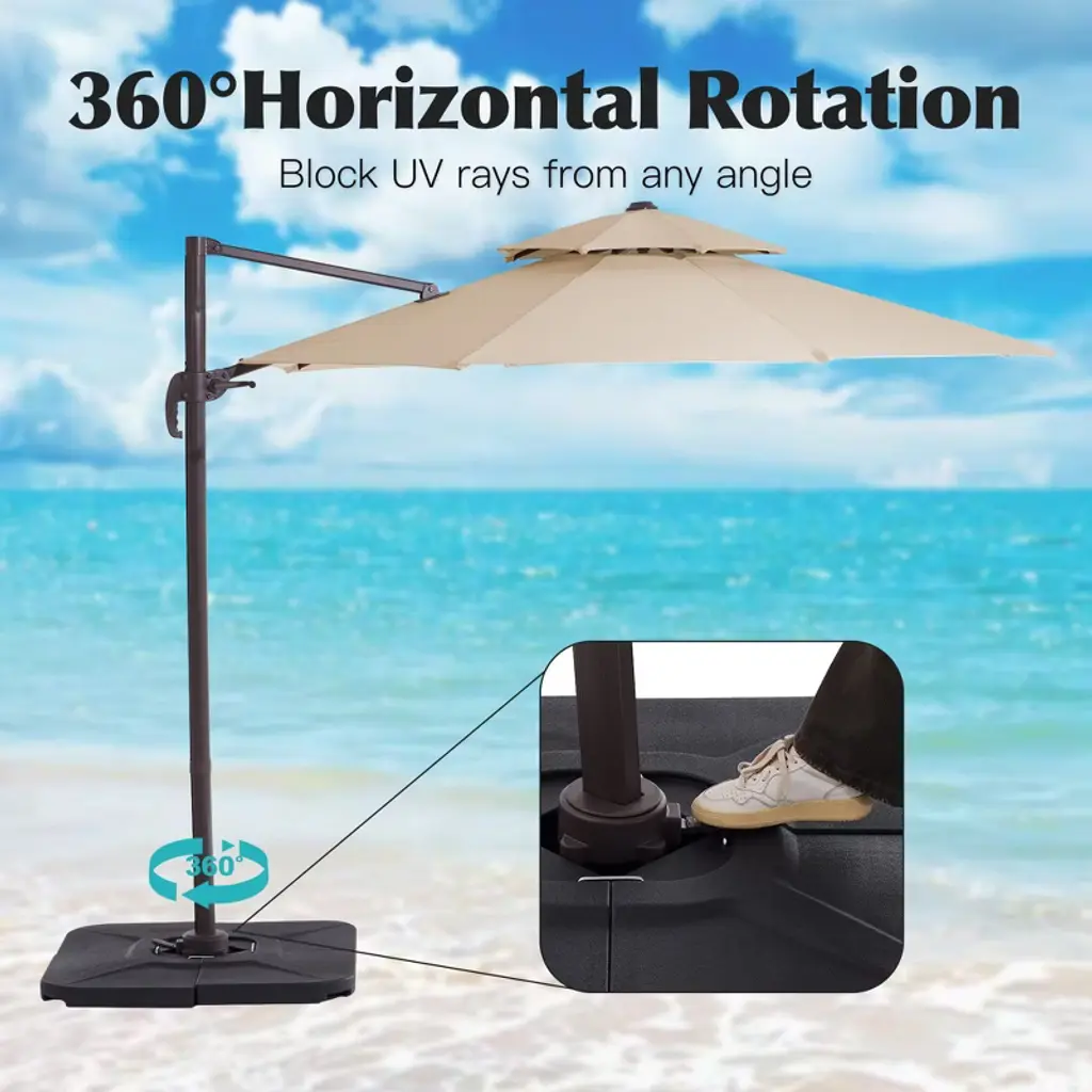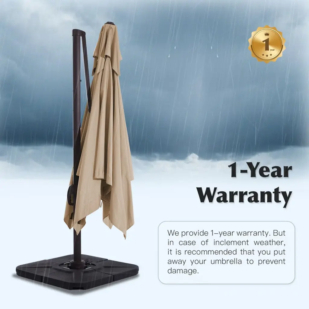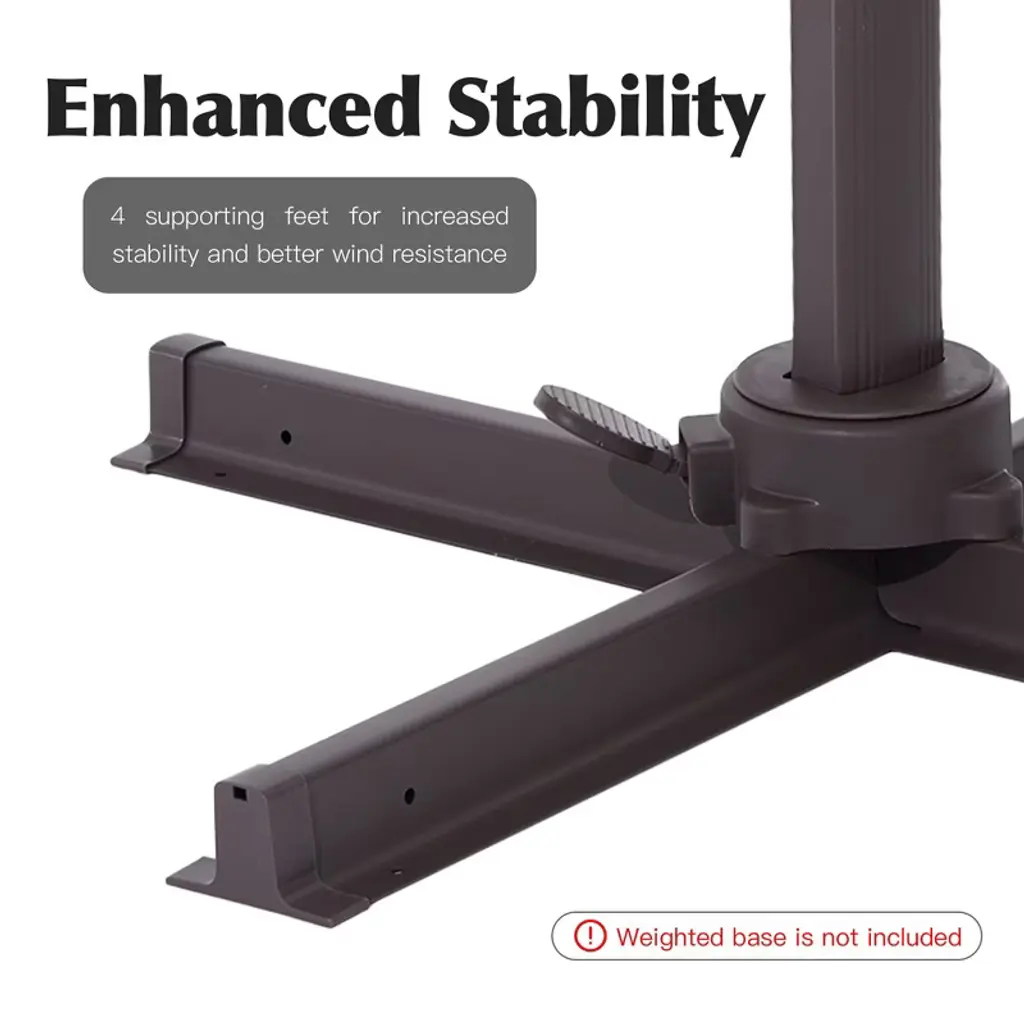Our 11FT cantilever umbrella is made of rust-free Aluminum alloy with 8 heavy-duty ribs to help the umbrella stand strong. With height adjustments along the main pole, it can accommodate the ever-moving sun and provide all-day shade. Every joint has been reinforced, so it can hold more weight and withstand winds. Our 11FT canopy provides large and steady shade for your backyard, garden, deck, restaurant, or coffee shop. Order now and make every day a sunny one. If you need a sturdy umbrella base, you can search for TCIN 1001821768 and purchase it!