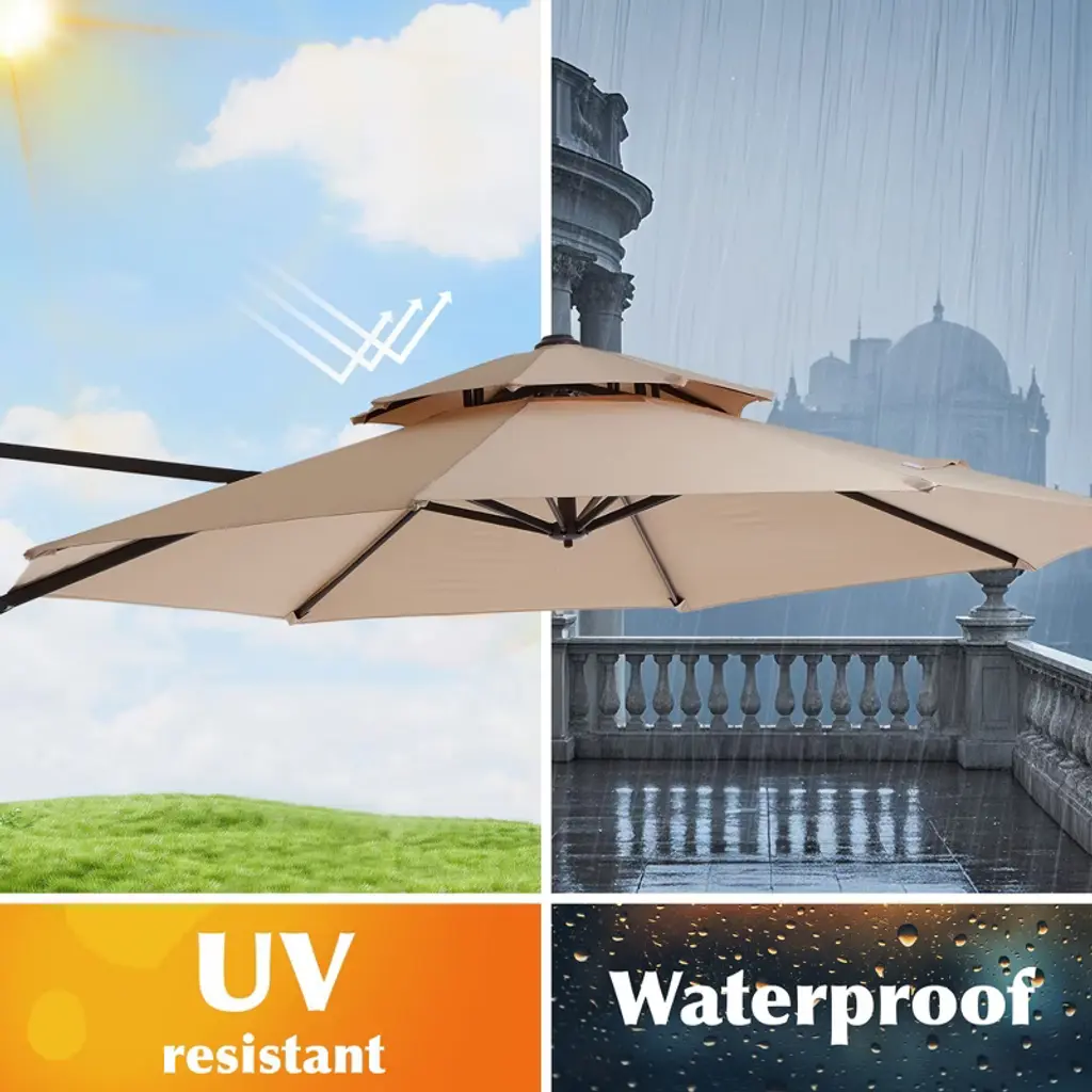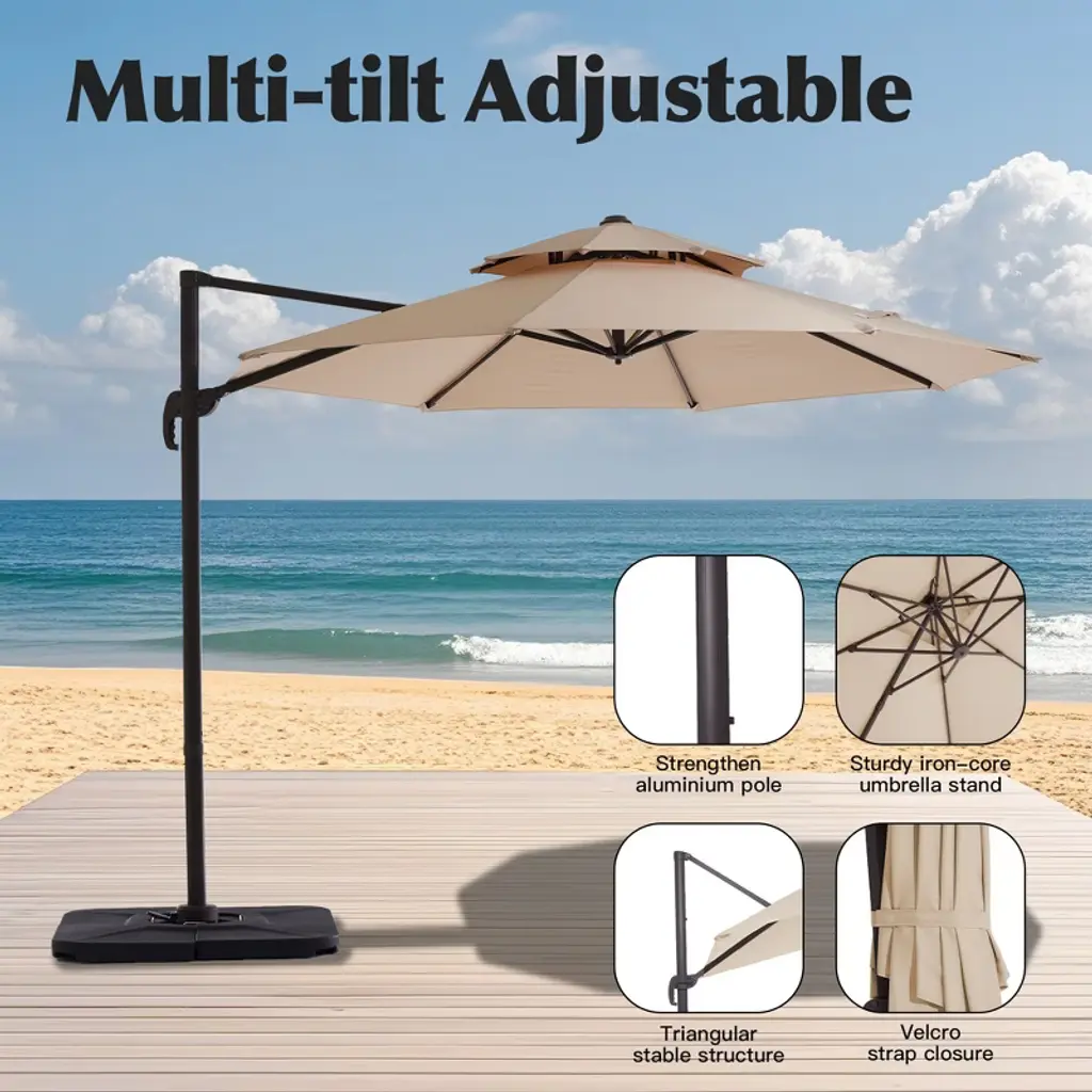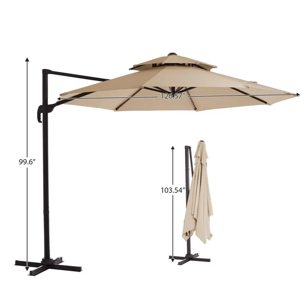 Our 11FT cantilever umbrella is made of rust-free Aluminum alloy with 8 heavy-duty ribs to help the umbrella stand strong. With height adjustments along the main pole, it can accommodate the ever-moving sun and provide all-day shade. Every joint has been reinforced, so it can hold more weight and withstand winds. Our 11FT canopy provides large and steady shade for your backyard, garden, deck, restaurant, or coffee shop. Order now and make every day a sunny one. If you need a sturdy umbrella base, you can search for TCIN 1001821768 and purchase it!