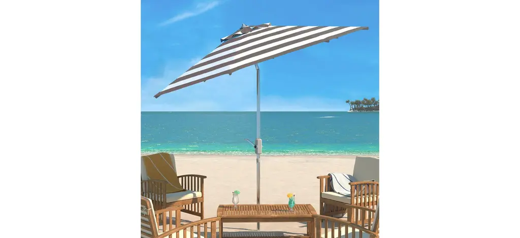 In the heart of Miami Beach sits the palatial art deco hotel whose cosmopolitan guests inspired this fashionable outdoor Iris Patio 9' Umbrella. Its bold color brings timeless style while its clean lines make it contemporary open air couture.