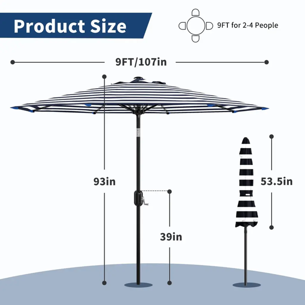 Jojoka 9Ft Patio Umbrella,table Umbrella Outdoor Patio With Crank Lift & Push Button Tilt,8 Sturdy Ribs For Yard