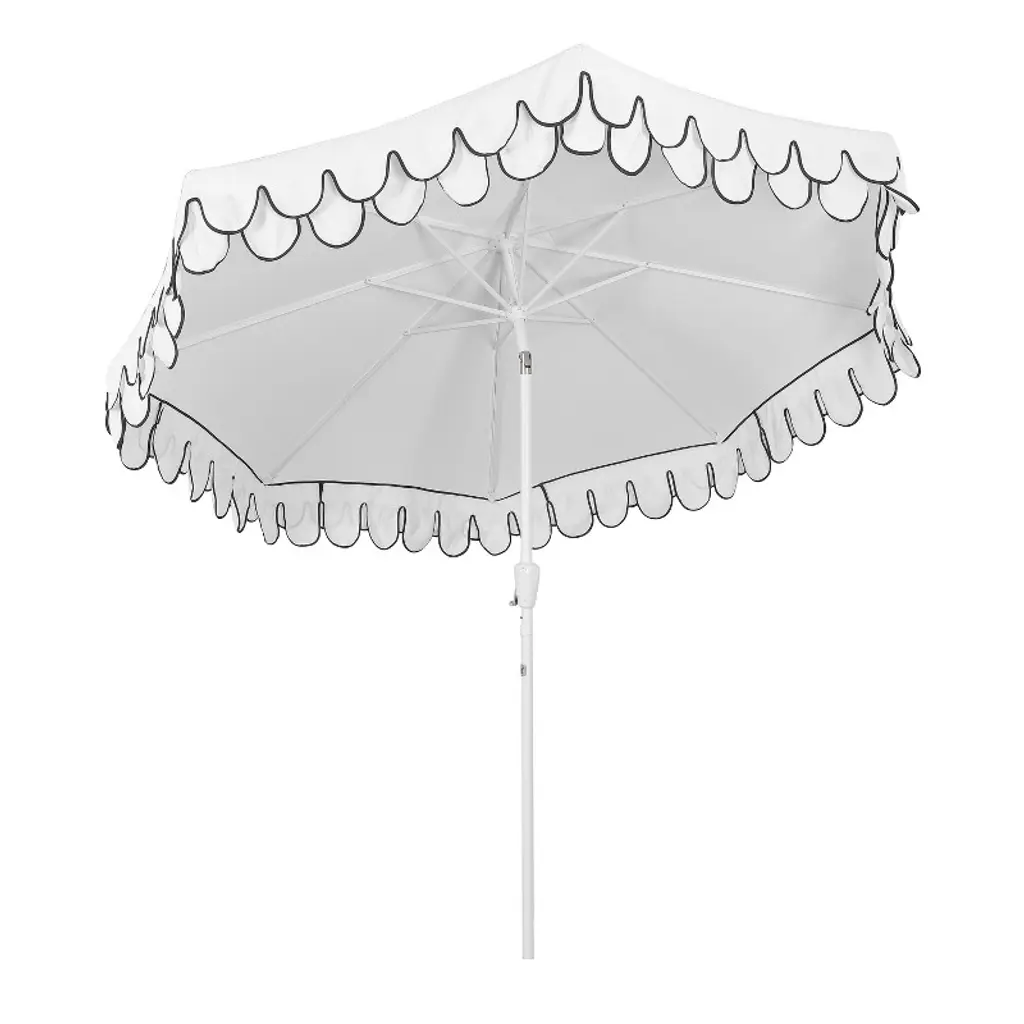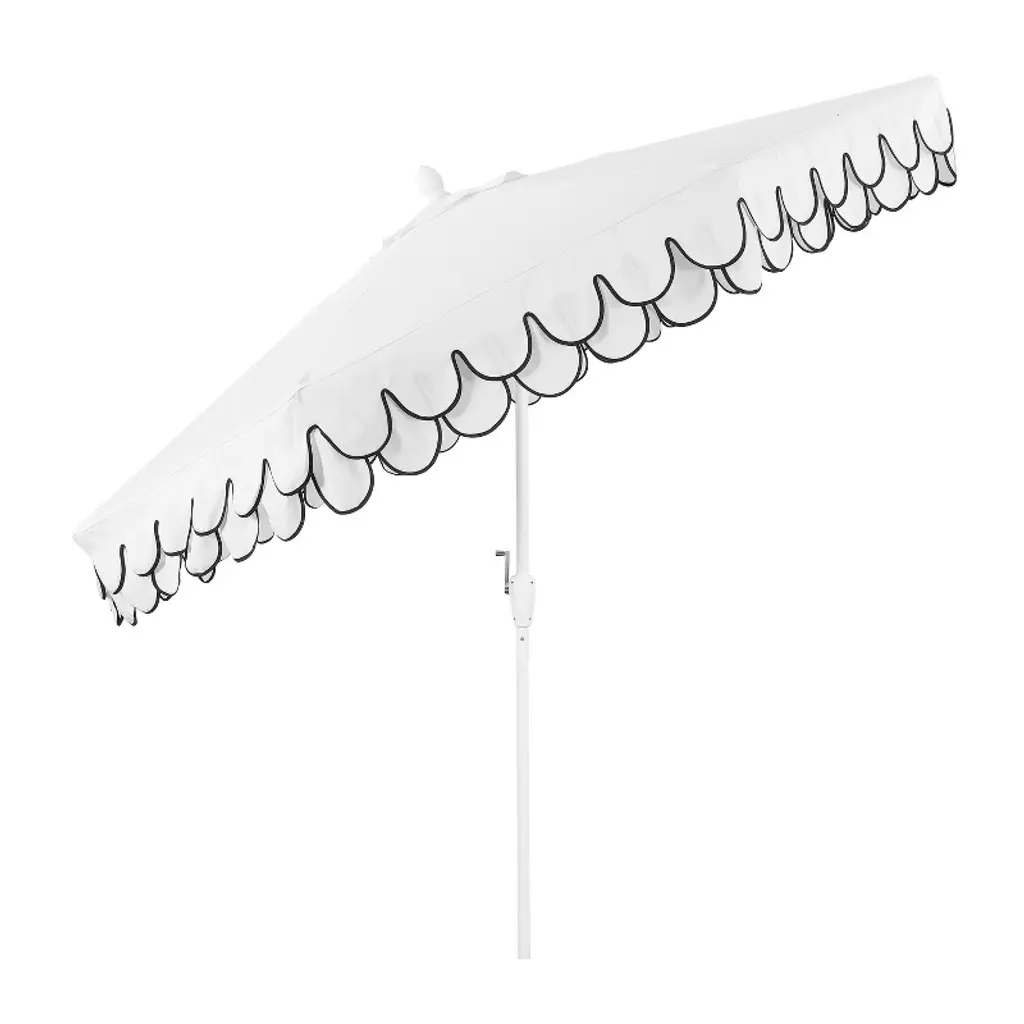 Jonathan Y Tracy 9 Ft. Classic Midcentury Scalloped Fringe Market Patio Umbrella With Auto-tilt, Crank, Wind Vent And Uv Protection In White/black