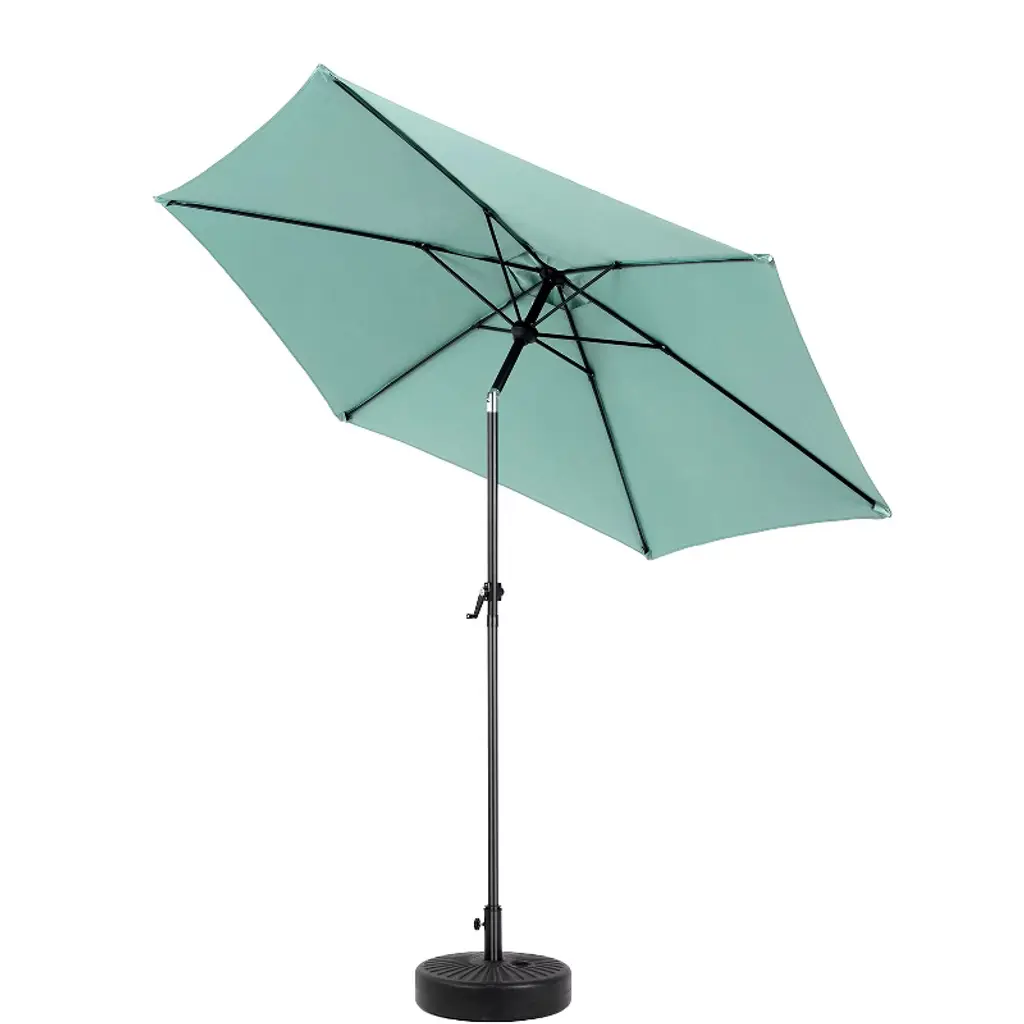 Patio umbrella is made of 100% polyester, waterproof and UV resistant, long lasting, easy to clean.This outdoor umbrella with 9 ft. diameter shade your 42"- 54" round, square or rectangle table with 4 to 6 chairs, Ideal for both residential and commercial locations.