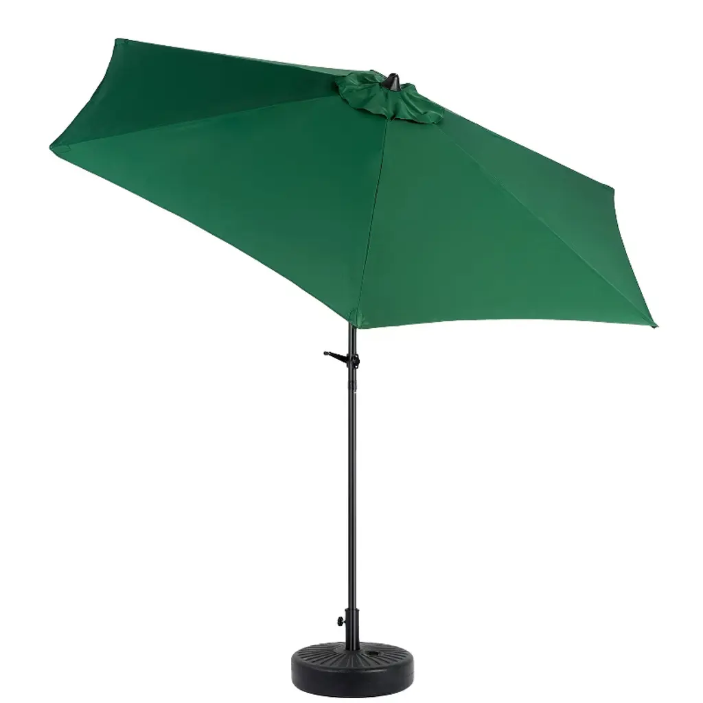 Patio umbrella is made of 100% polyester, waterproof and UV resistant, long lasting, easy to clean.This outdoor umbrella with 9 ft. diameter shade your 42"- 54" round, square or rectangle table with 4 to 6 chairs, Ideal for both residential and commercial locations.
