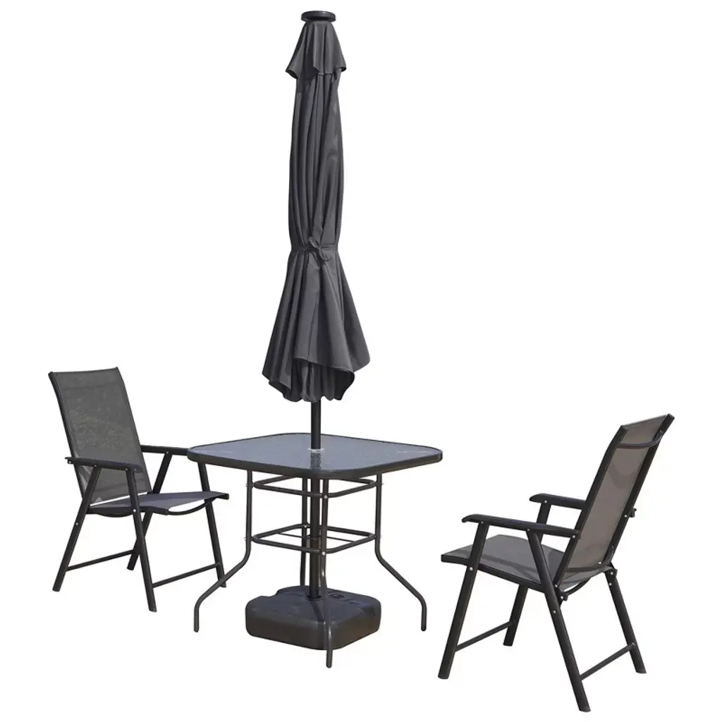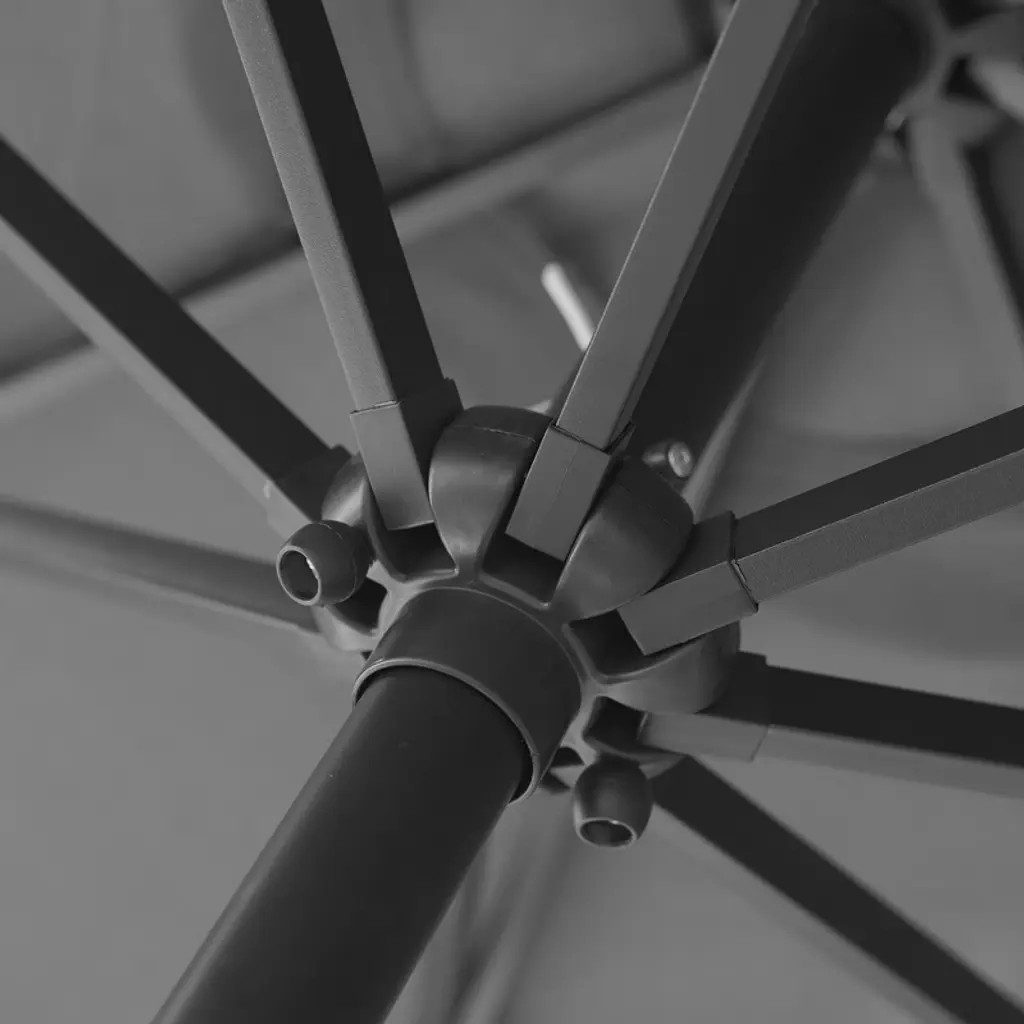 Enjoy being outdoors without the sun blasting down on you as you sit underneath this Sierra Market Umbrella. The Umbrella has 24 LEDs on the umbrella ribs to light up your patio. This umbrella is perfect for covering outdoor dining tables, hammocks, deep seating patio furniture sets, and more. Each umbrella has a durable steel pole and 8 steel ribs. The solar panel will keep the lights on without having to connect to power. The ribs made of powder-coated steel are rust-resistant and strong enough to handle regular wind and rain It's perfect for gardens, balconies, decks, swimming pools, or cafes. Please note, that a heavy base is necessary to place on the cross base to keep this umbrella securely in place (not included, must be purchased separately)