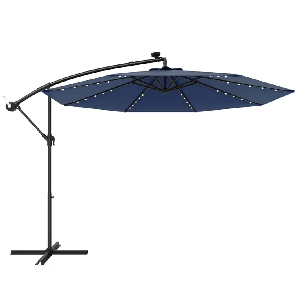 Leisuremod Willry Modern 10ft Outdoor Offset Cantilever Hanging Patio Umbrella With Solar Powered Led – Backyard, Deck, Garden, Poolside, Patio Shade