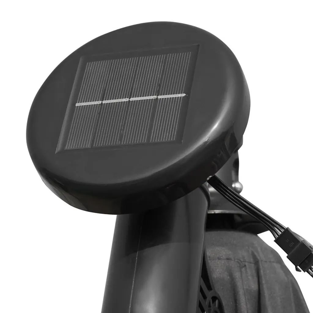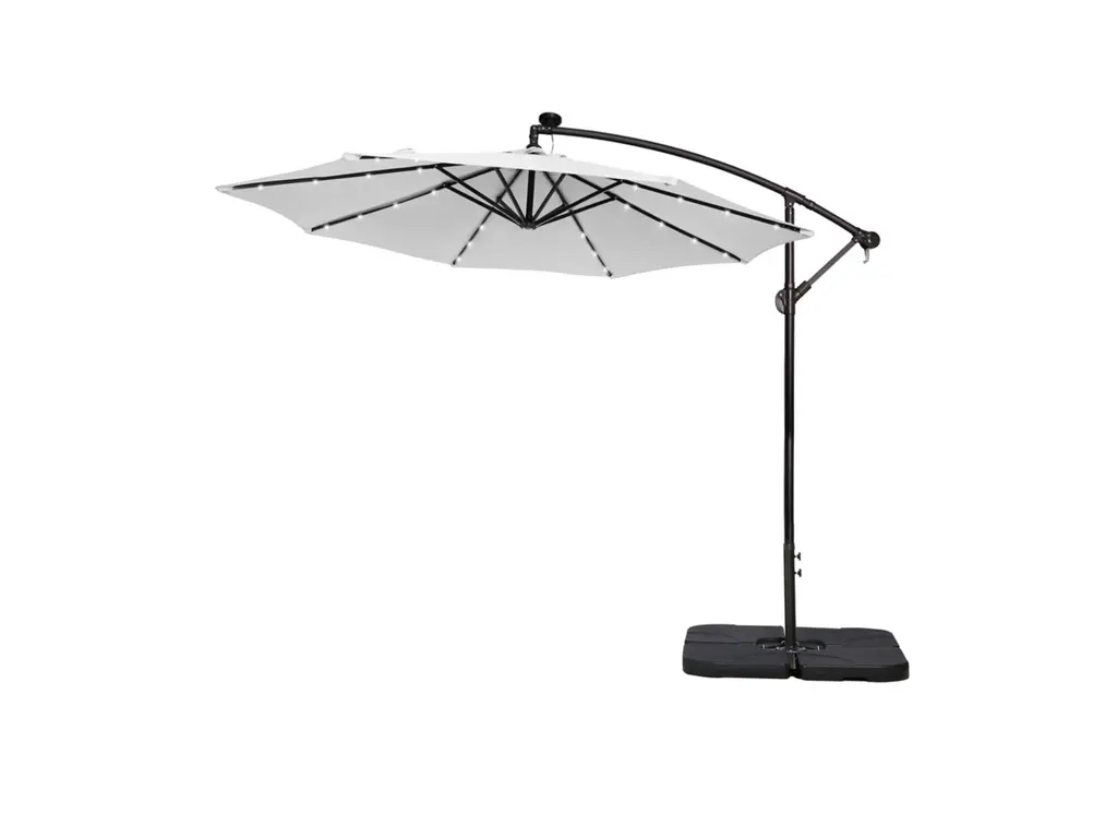 Enjoy being outdoors without the sun blasting down on you as you sit underneath this Willry Cantilever Umbrella. The Umbrella has 24 LEDs on the umbrella ribs to light up your patio. This umbrella is perfect for hanging over outdoor dining tables, hammocks, deep seating patio furniture sets, and more. Each umbrella has a durable steel pole and 8 steel ribs. The solar panel will keep the lights on without having to connect to power. The ribs made of powder-coated steel are rust-resistant and strong enough to handle regular wind and rain It's perfect for gardens, balconies, decks, swimming pools, or cafes. Please note, that a heavy base is necessary to place on the cross base to keep this umbrella securely in place (not included, must be purchased separately). Product Dimensions Umbrella: 96.46" H x 118" W x 118" D Pole Diameter: 1.89"