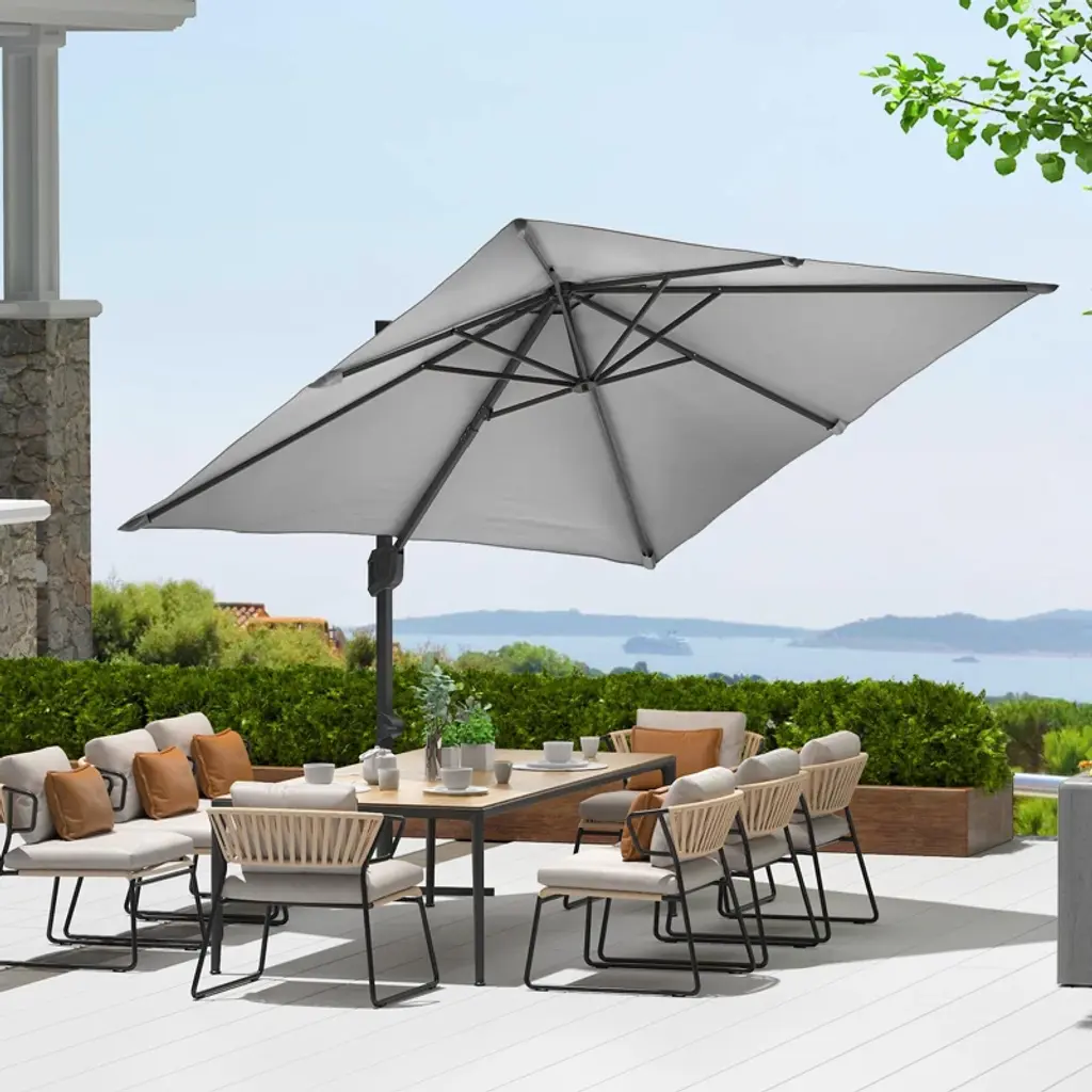 Transform your outdoor space with the LeisureMod Chelsea 8-Seater Outdoor Aluminum Dining Set, designed for durability, comfort, and modern appeal. The sleek aluminum frames ensure long-lasting strength while resisting rust, UV rays, mold, mildew, heat, and water damage, making it ideal for year-round outdoor use. A spacious rectangular table provides ample room for dining, while the plush cushioned chairs offer exceptional comfort for gatherings with family and friends. Cushion ties keep seating secure, and removable, machine-washable covers allow for easy maintenance. The built-in umbrella hole offers versatility for shaded or sunlit dining. Crafted for both style and functionality, this set enhances any patio, deck, or garden space.