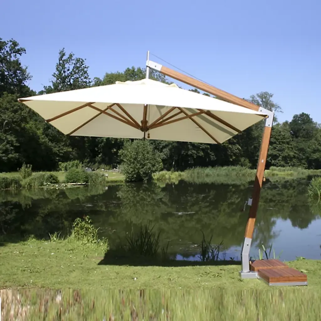 Levante Rectangular Side Wind Bamboo Cantilever Umbrella With Base