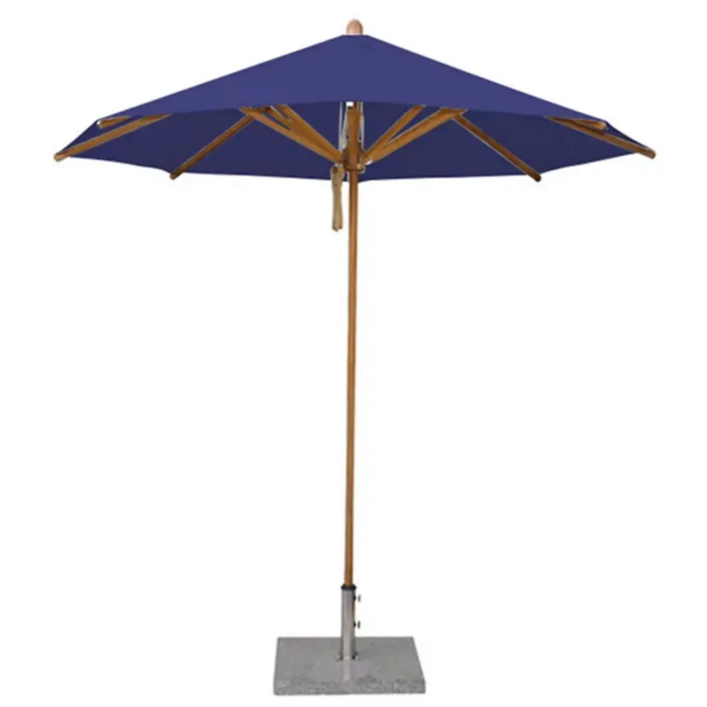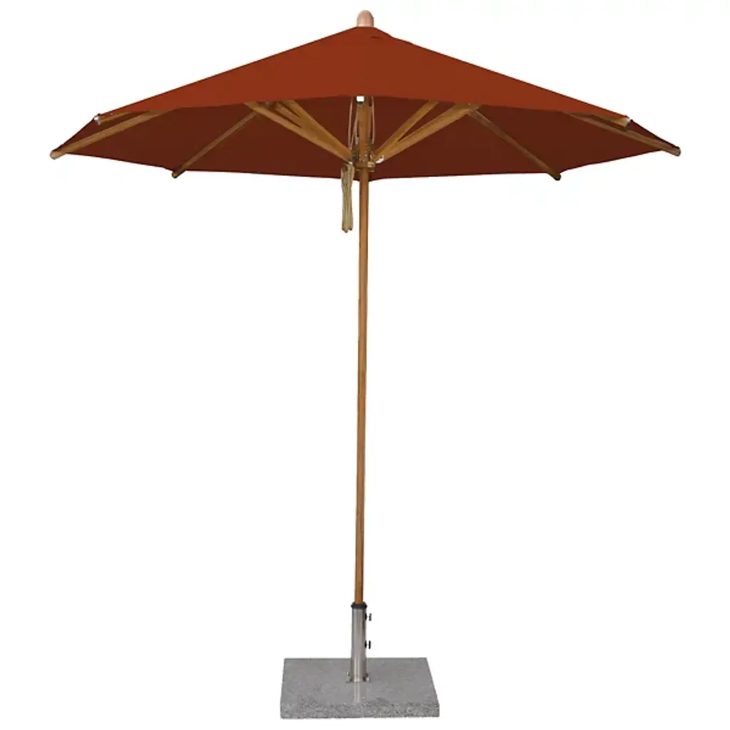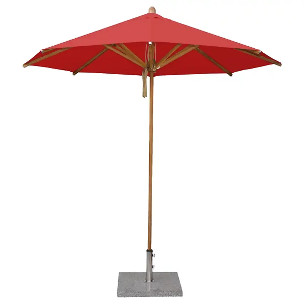 Cast a spot of shade with the wide-reaching and tasteful Levante Round Bamboo Umbrella by Bambrella. A sleek, contemporary assembly of bamboo and stainless steel, it uses a sturdy square base to suspend a single-piece pole heading up to a broad round canopy supported by bamboo arms for added strength and flexibility. The hub and runner are also made from turned bamboo and use a dual pulley system to lower and raise with ease.