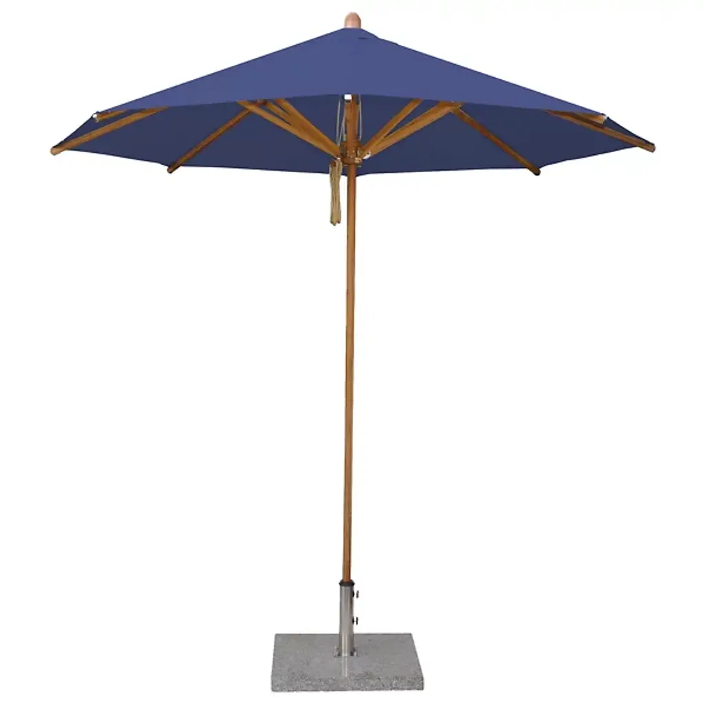 Cast a spot of shade with the wide-reaching and tasteful Levante Round Bamboo Umbrella by Bambrella. A sleek, contemporary assembly of bamboo and stainless steel, it uses a sturdy square base to suspend a single-piece pole heading up to a broad round canopy supported by bamboo arms for added strength and flexibility. The hub and runner are also made from turned bamboo and use a dual pulley system to lower and raise with ease.