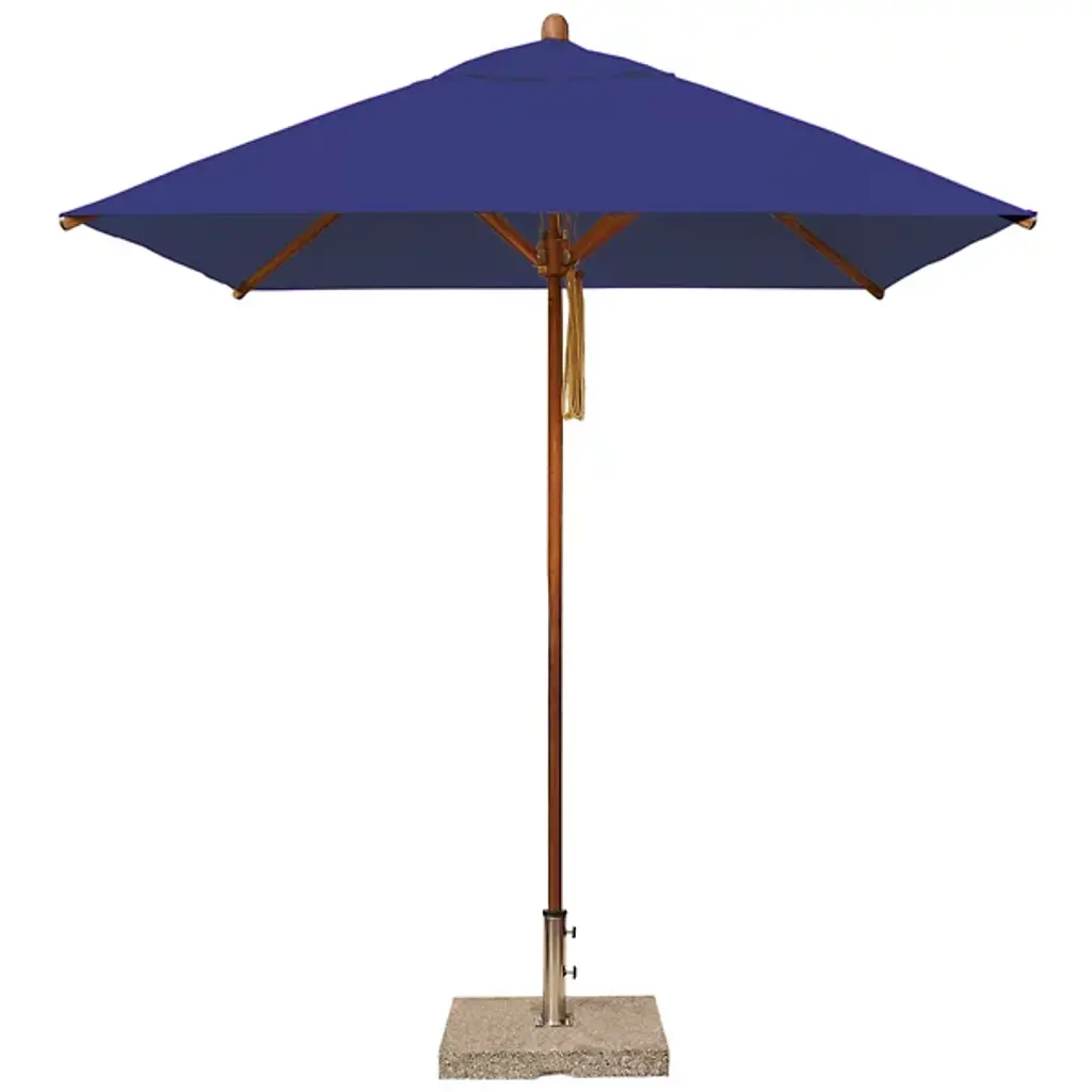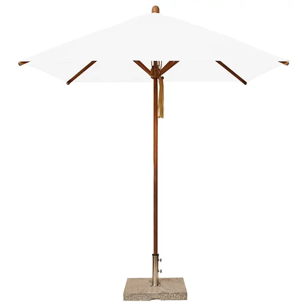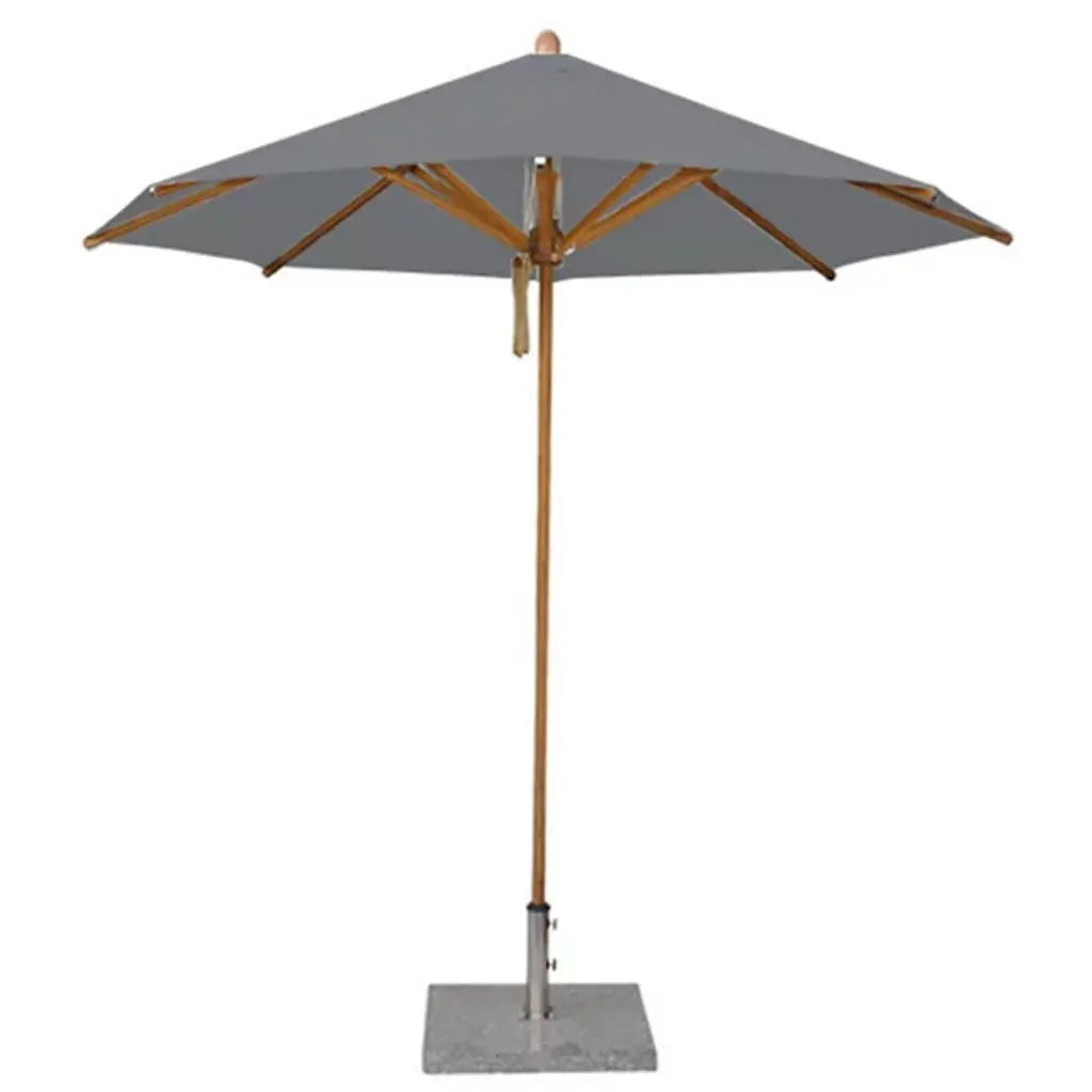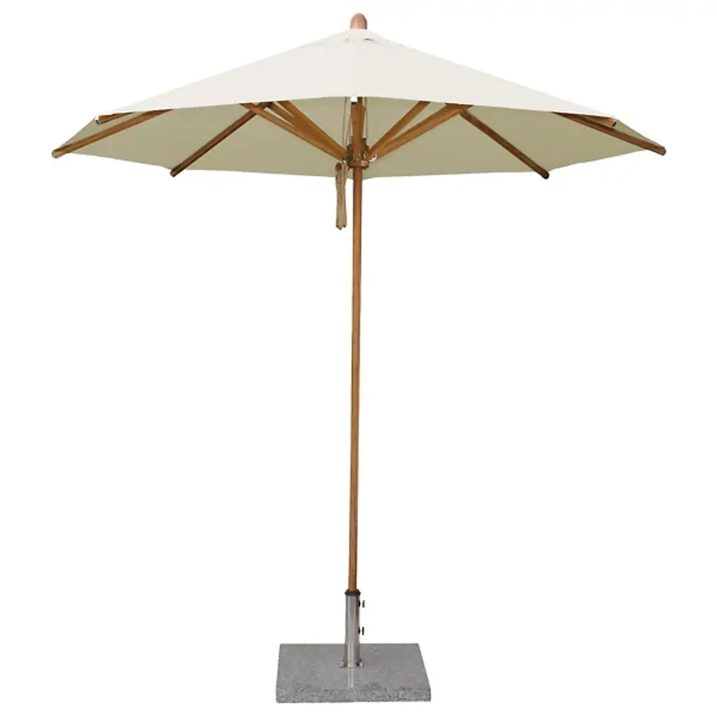 Cast a spot of shade with the wide-reaching and tasteful Levante Round Bamboo Umbrella by Bambrella. A sleek, contemporary assembly of bamboo and stainless steel, it uses a sturdy square base to suspend a single-piece pole heading up to a broad round canopy supported by bamboo arms for added strength and flexibility. The hub and runner are also made from turned bamboo and use a dual pulley system to lower and raise with ease.