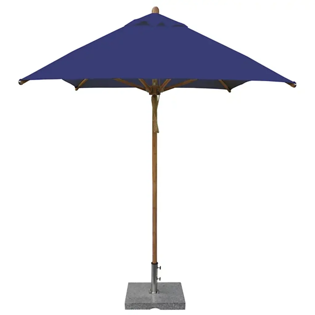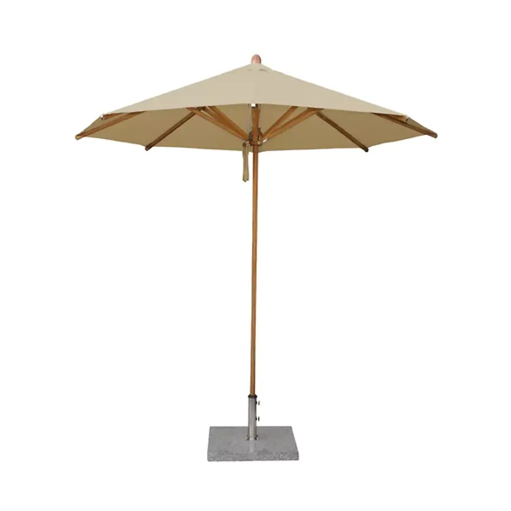Cast a spot of shade with the wide-reaching and tasteful Levante Round Bamboo Umbrella by Bambrella. A sleek, contemporary assembly of bamboo and stainless steel, it uses a sturdy square base to suspend a single-piece pole heading up to a broad round canopy supported by bamboo arms for added strength and flexibility. The hub and runner are also made from turned bamboo and use a dual pulley system to lower and raise with ease.