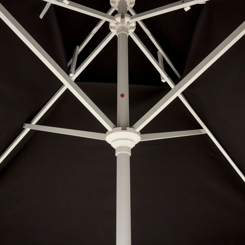 Designed by us and available only at One Kings Lane: Whether you're entertaining or just lounging outdoors, catch some shade in style with this tiered patio umbrella. Its square canopy is crafted from durable Sunbrella acrylic to protect against the elements, while its frame is crafted from a combination of sturdy aluminum and zinc plated steel with a crank open, non-tilt function. An umbrella base is not included but is required for use.