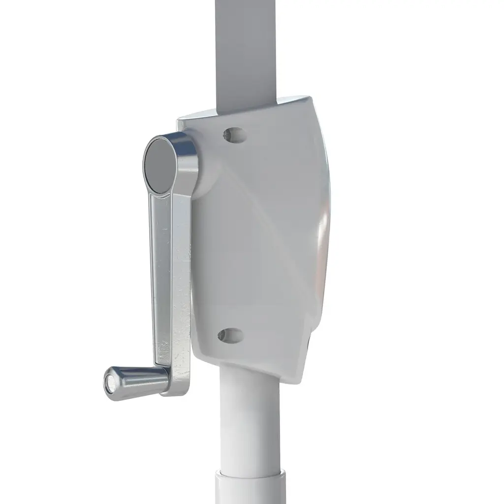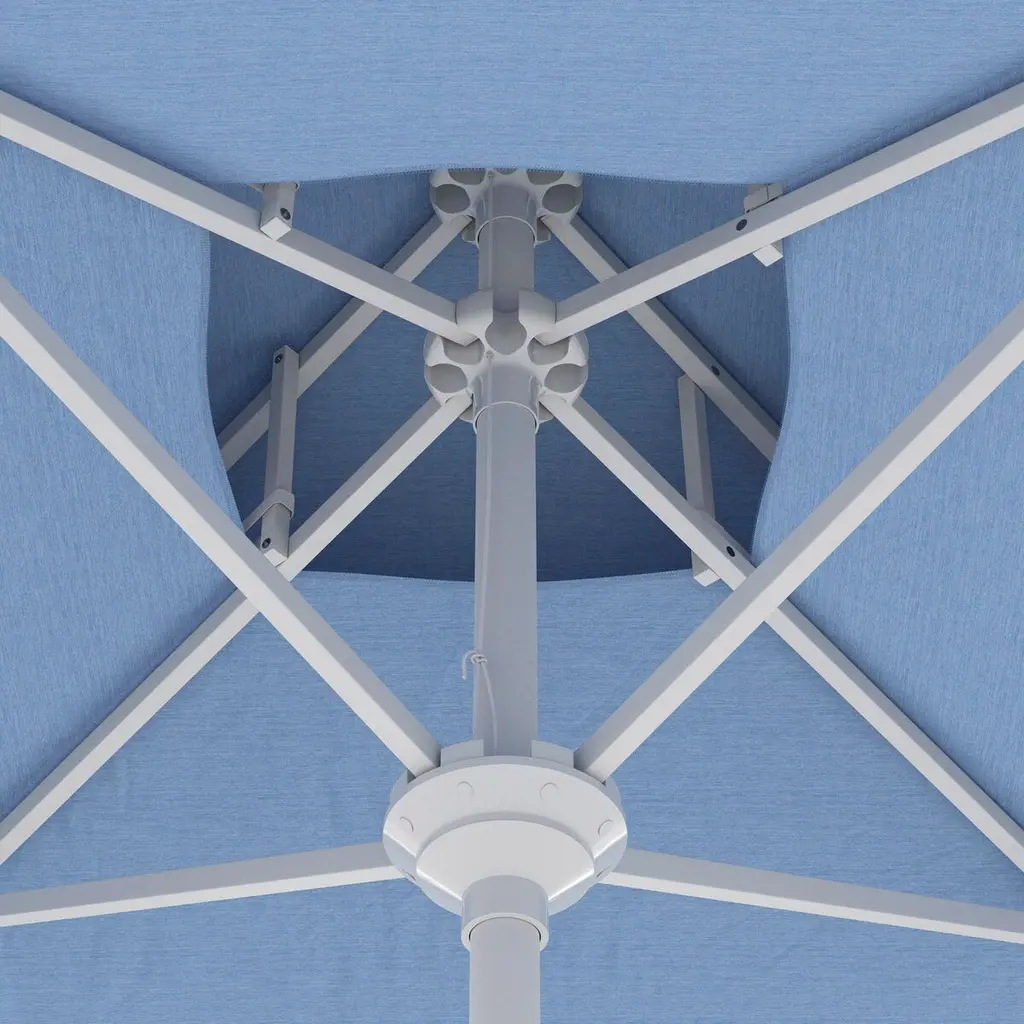 Designed by us and available only at One Kings Lane: Whether you're entertaining or just lounging outdoors, catch some shade in style with this tiered patio umbrella. Its square canopy is crafted from durable Sunbrella acrylic to protect against the elements, while its frame is crafted from a combination of sturdy aluminum and zinc plated steel with a crank open, non-tilt function. An umbrella base is not included but is required for use.