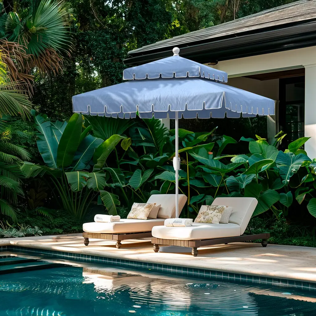 Liz Two-tier Square Patio Umbrella, Sunbrella