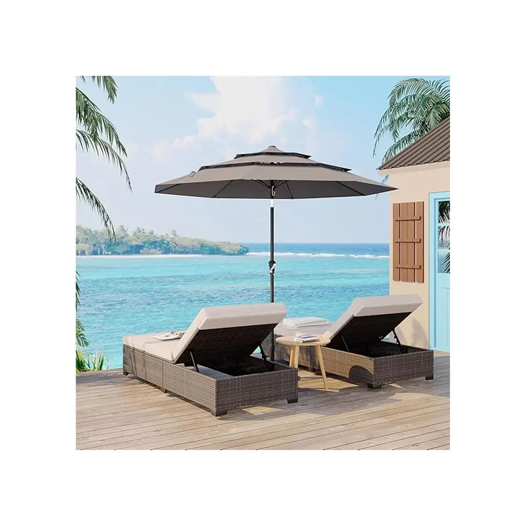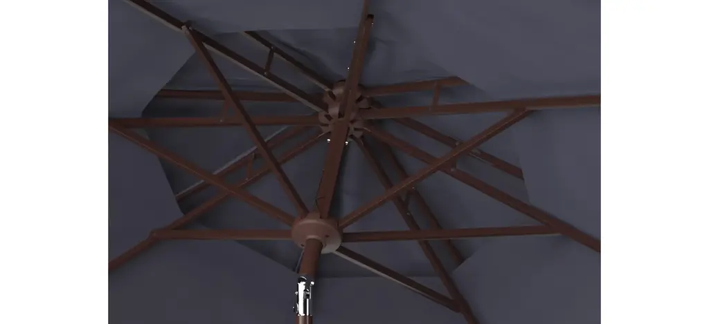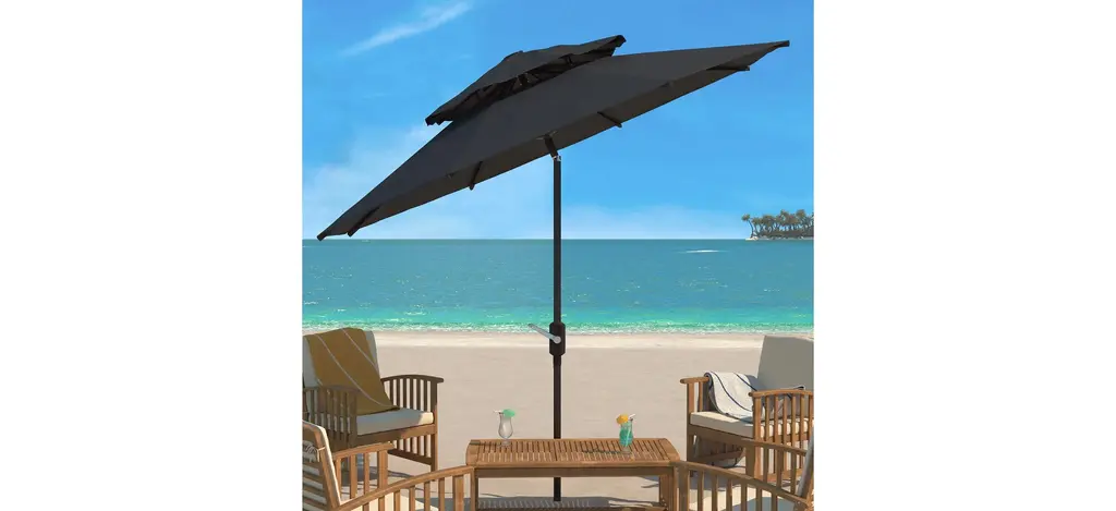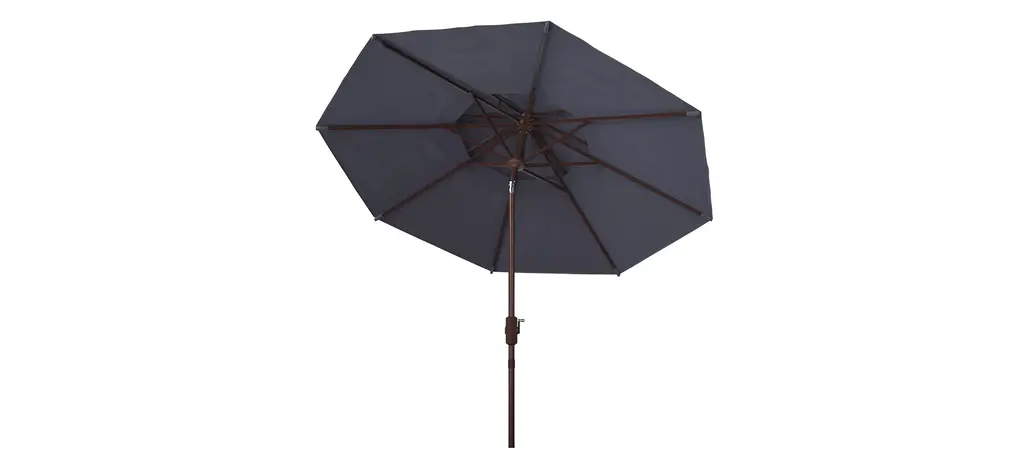 A classic Lorenia Patio Umbrella gets a stylish makeover in tonal hues with a double top for chic European flair. Its nine foot polyester canopy and aluminum post make it ideal for the veranda or pool deck. Includes easy crank and tilt mechanism.