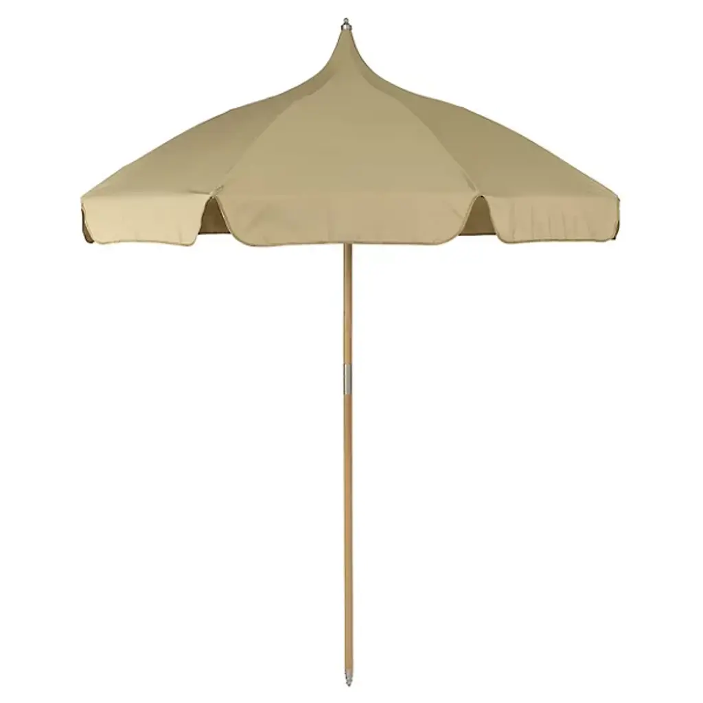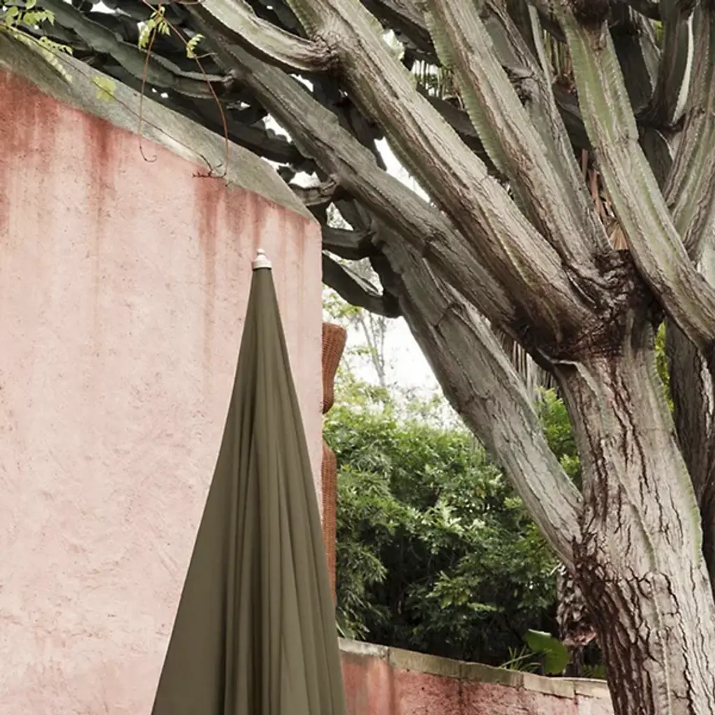 The Lull Outdoor Umbrella from Ferm LIVING provides a serene escape from the summer heat. Its romantic pagoda shape is reinforced with an FSC-certified wooden stem, making this large umbrella perfect for garden gatherings, beach outings, and any other setting under the sun. The fabric provides UV30+ protection, ensuring a safe and relaxing shade. The umbrella includes a matching bag for easy transportation and blends functionality with an elegant design for any outdoor adventure.