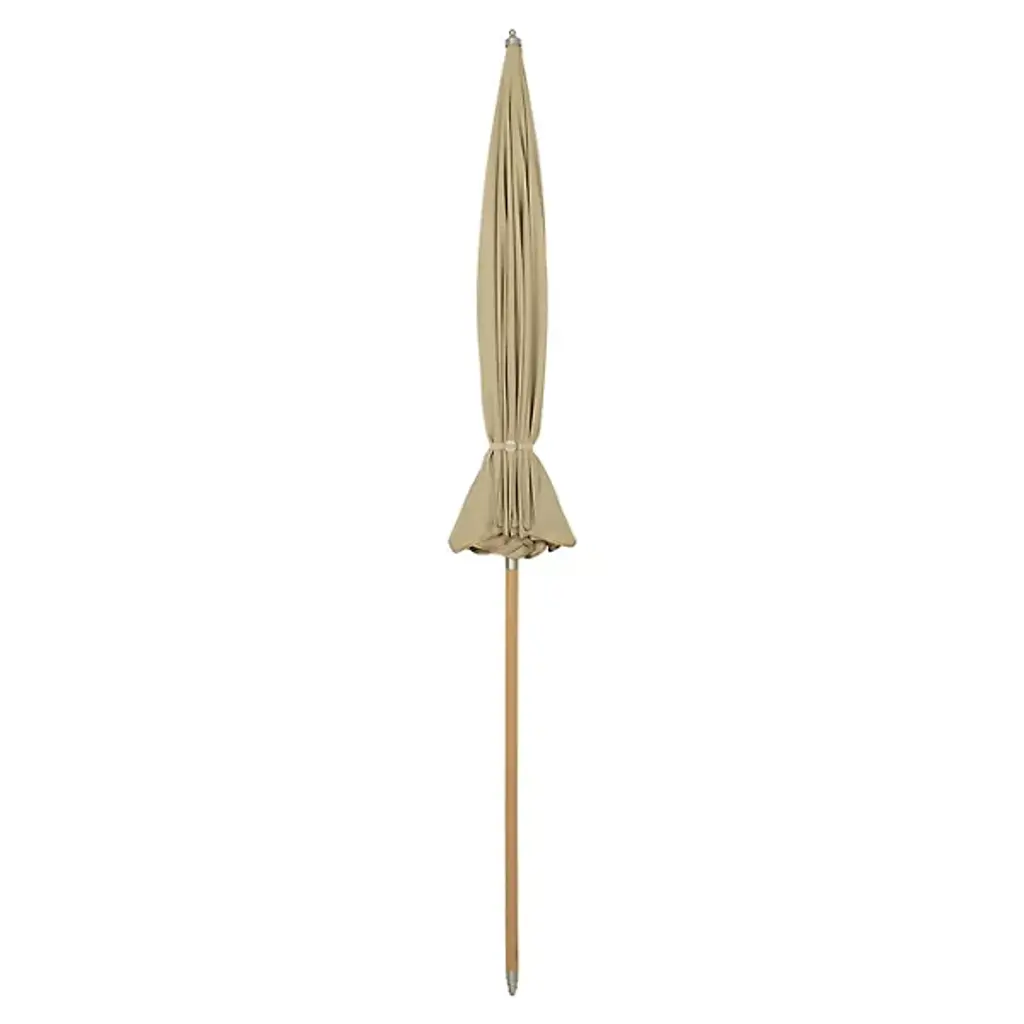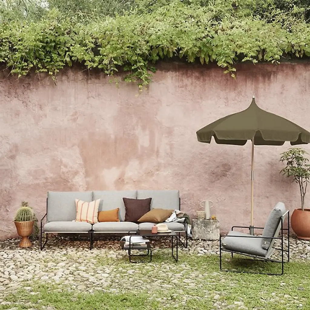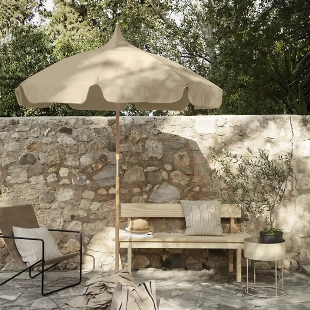 The Lull Outdoor Umbrella from Ferm LIVING provides a serene escape from the summer heat. Its romantic pagoda shape is reinforced with an FSC-certified wooden stem, making this large umbrella perfect for garden gatherings, beach outings, and any other setting under the sun. The fabric provides UV30+ protection, ensuring a safe and relaxing shade. The umbrella includes a matching bag for easy transportation and blends functionality with an elegant design for any outdoor adventure.