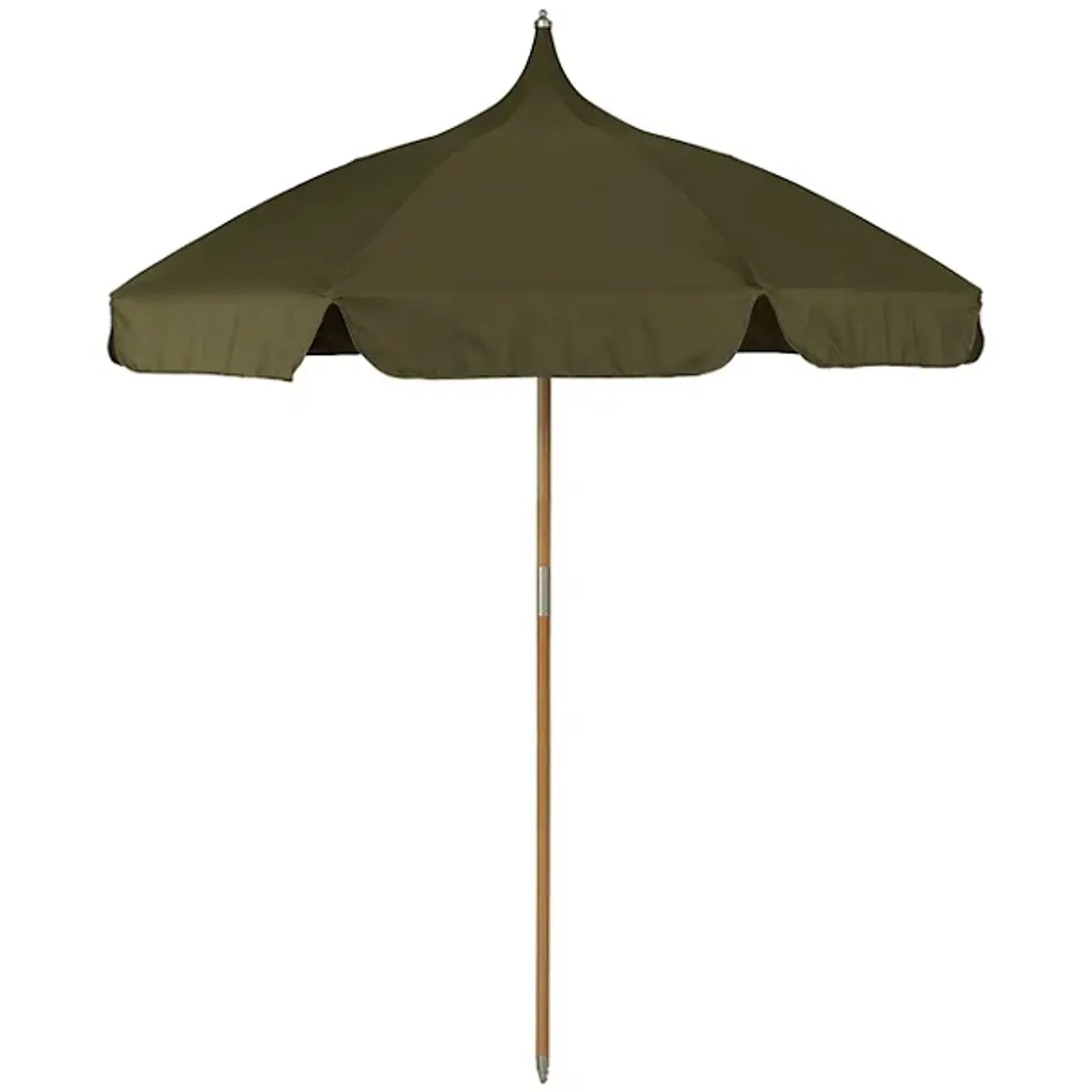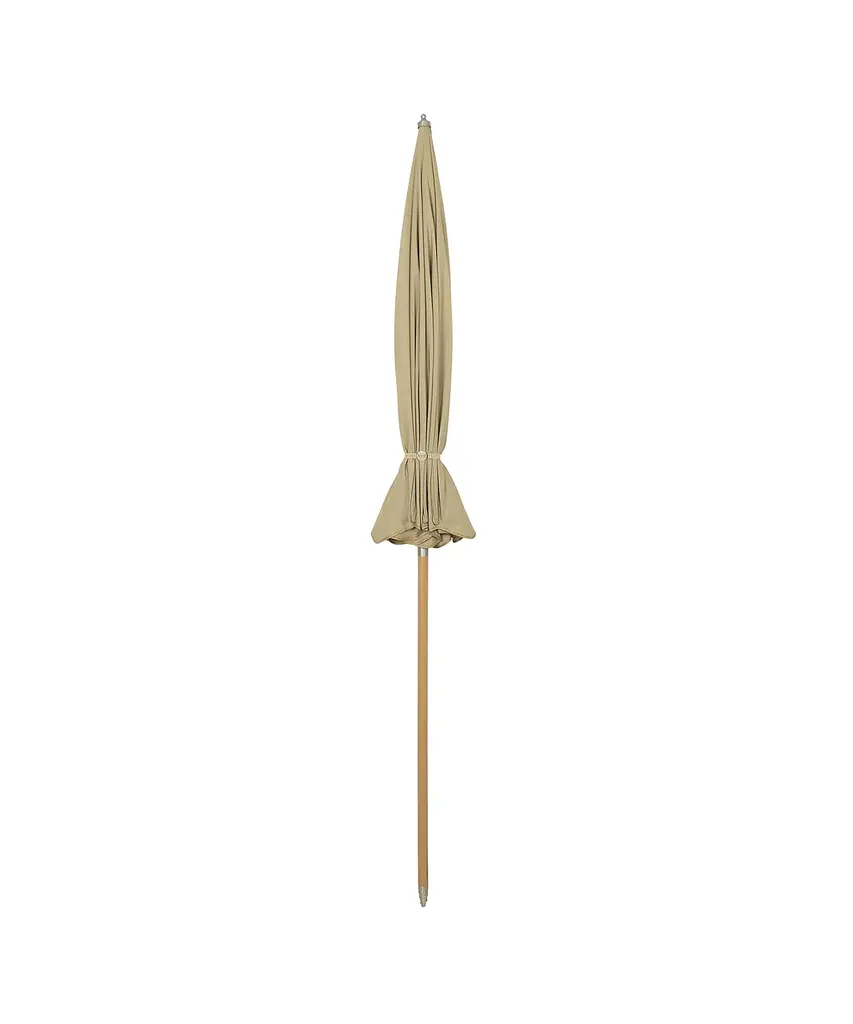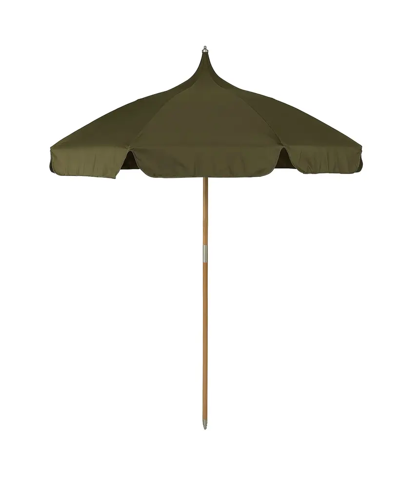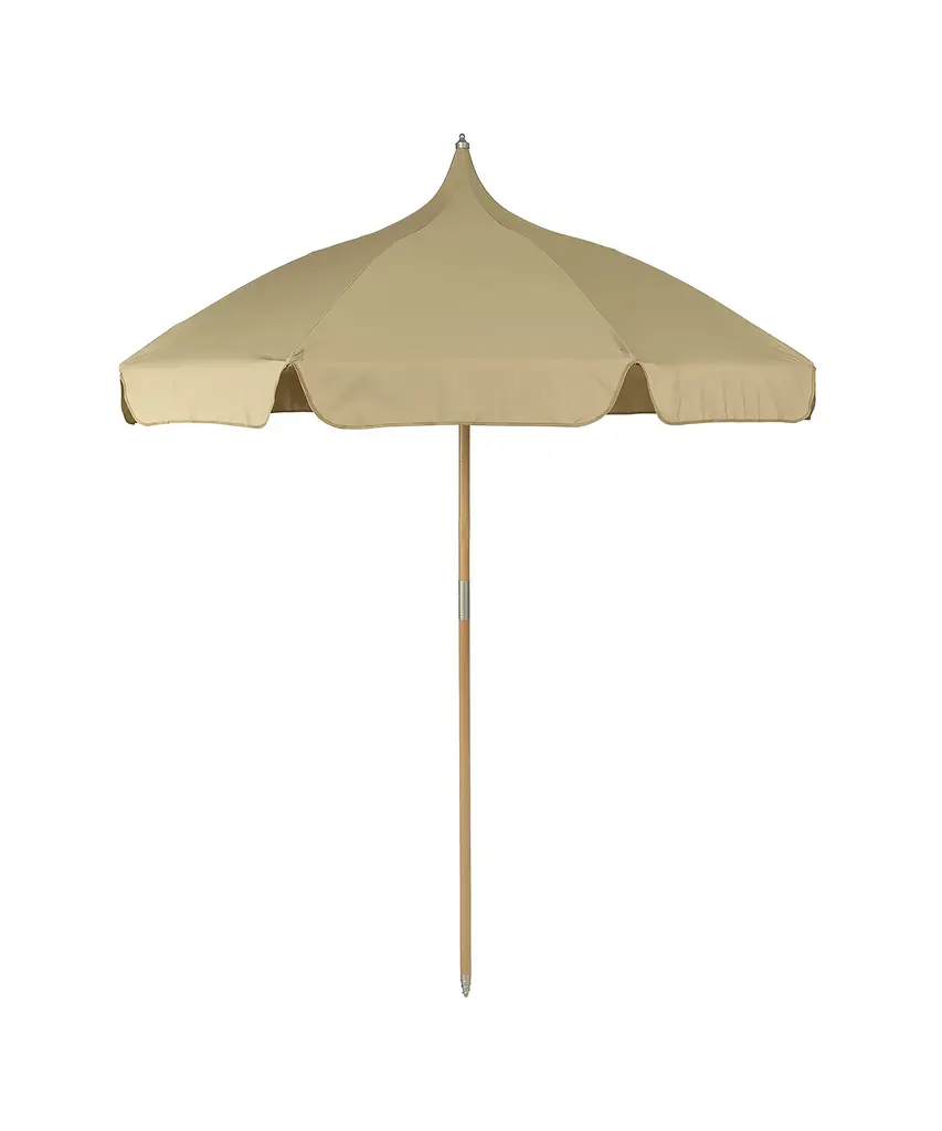 Working as a shield for summer's relentless heat, the Lull Umbrella calls for relaxation and serenity in the shade. With its romantic pagoda shape and FSC-certified wooden stem, the large outdoor umbrella is ideal for garden picnics, the beach, and everywhere else where you need shelter from the sun. The Lull Umbrella gives UV30+ protection and comes in a handy, matching bag to make transportation easier. Designed and produced by the Copenhagen-based studio Ferm Living.