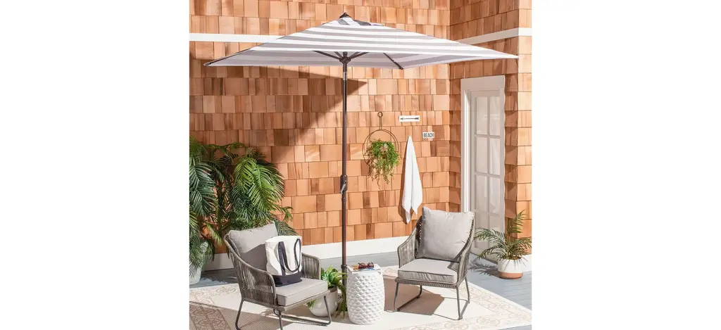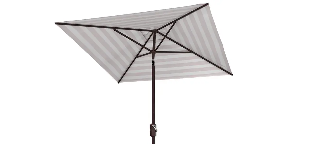 Inspired by the cosmopolitan Art Deco hotels in the heart of Miami Beach, this Marcie Umbrella is absolutely fashion fabulous. Its chic grey and white stripes and square canopy bring timeless style, and crisp clean lines make it contemporary open air couture.