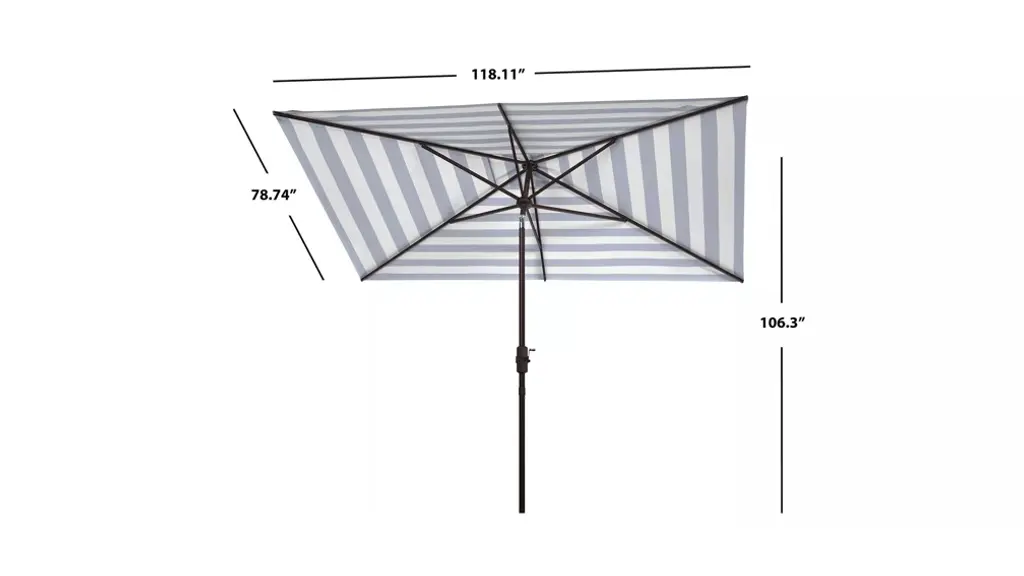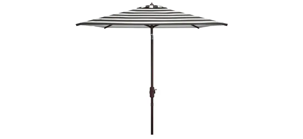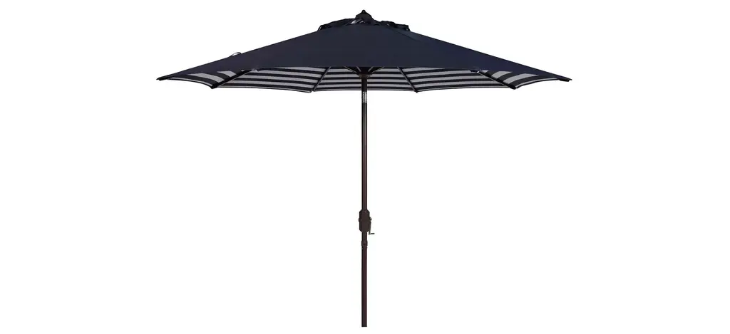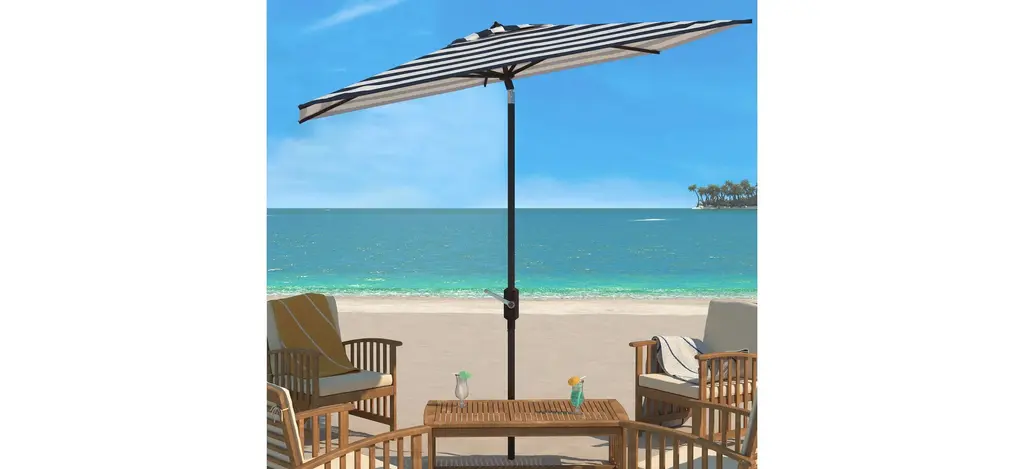 Inspired by the cosmopolitan Art Deco hotels in the heart of Miami Beach, this runway ready market umbrella is absolutely fashion fabulous. Its deep navy and white stripes bring timeless style, and crisp clean lines and rectangular canopy make it contemporary open air couture.
